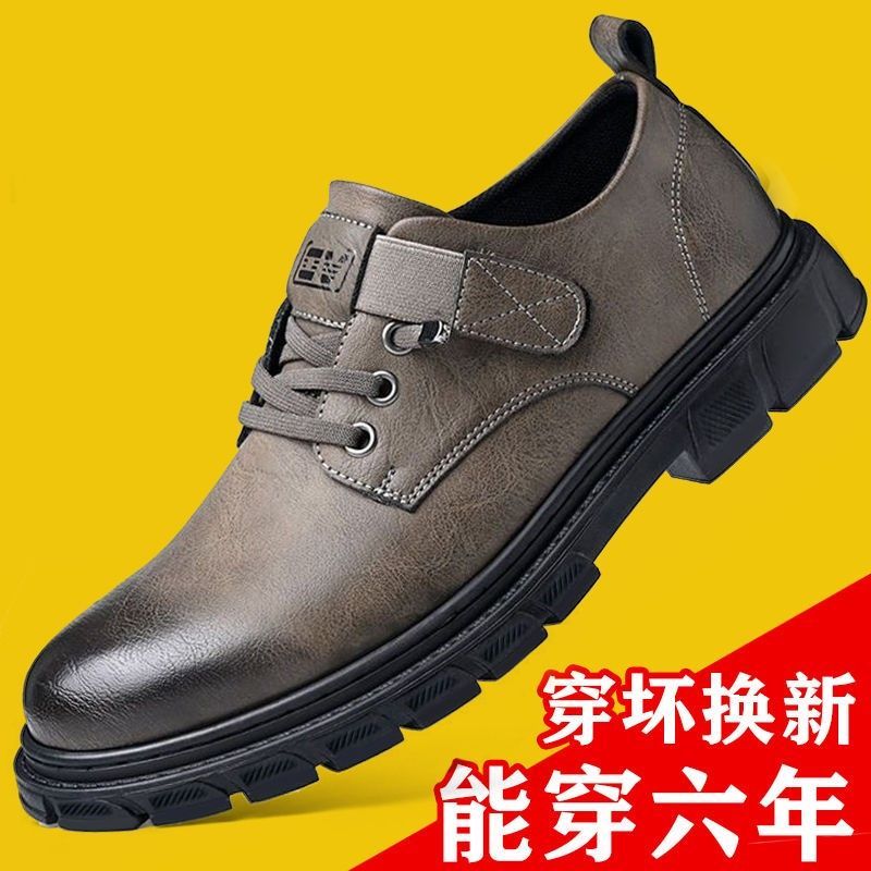 男士皮鞋真皮透气休闲鞋真皮牛皮英伦风工装鞋防滑软底男鞋子增高