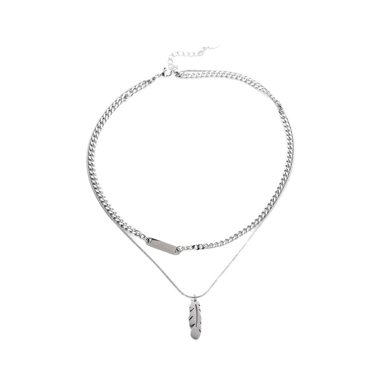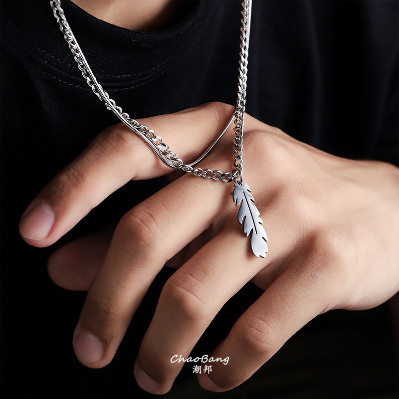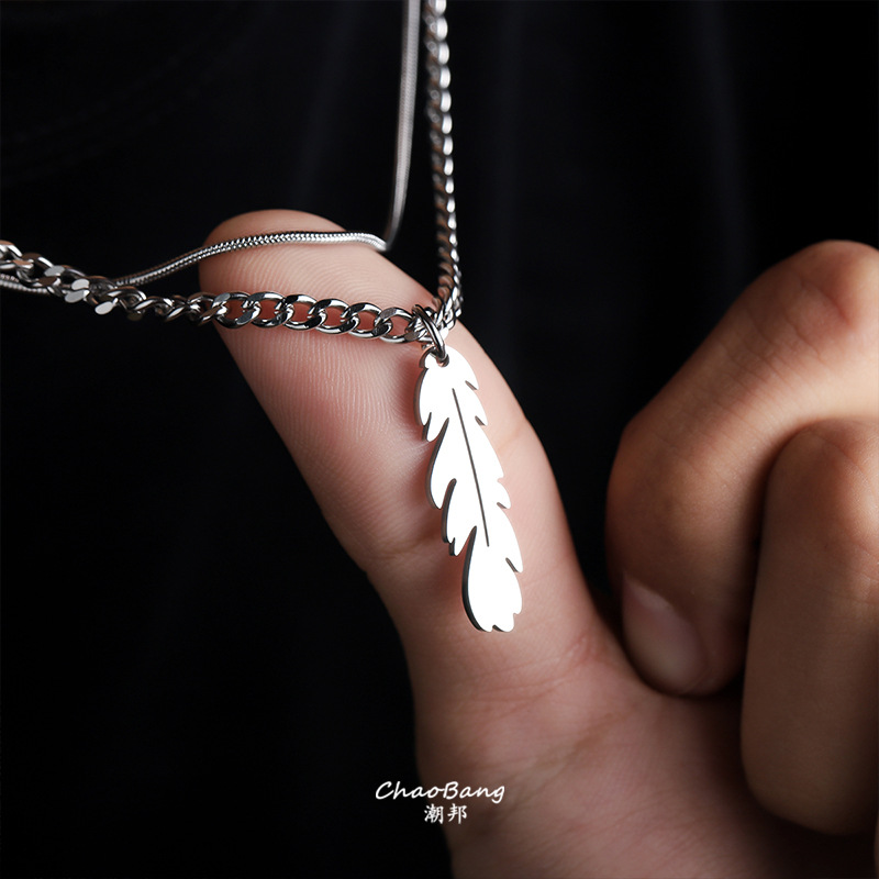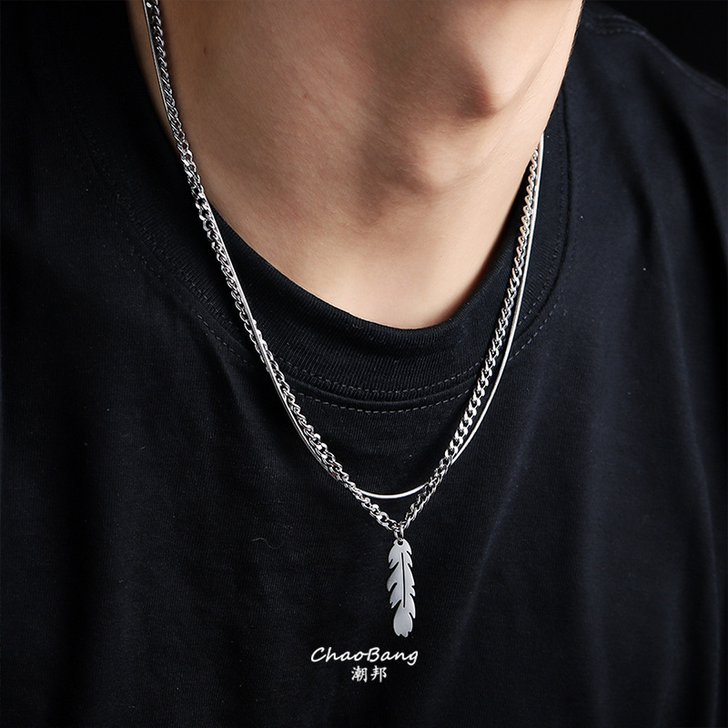 包邮价钛钢羽毛双层项链男小众个性时尚叠戴锁骨链不掉色配饰