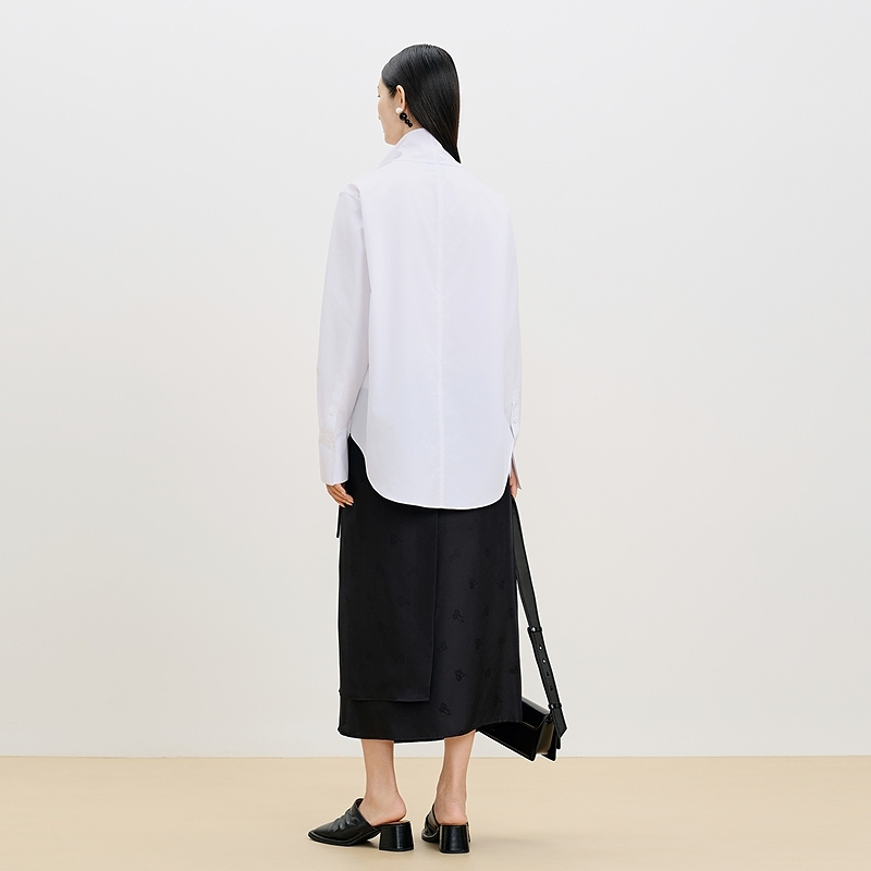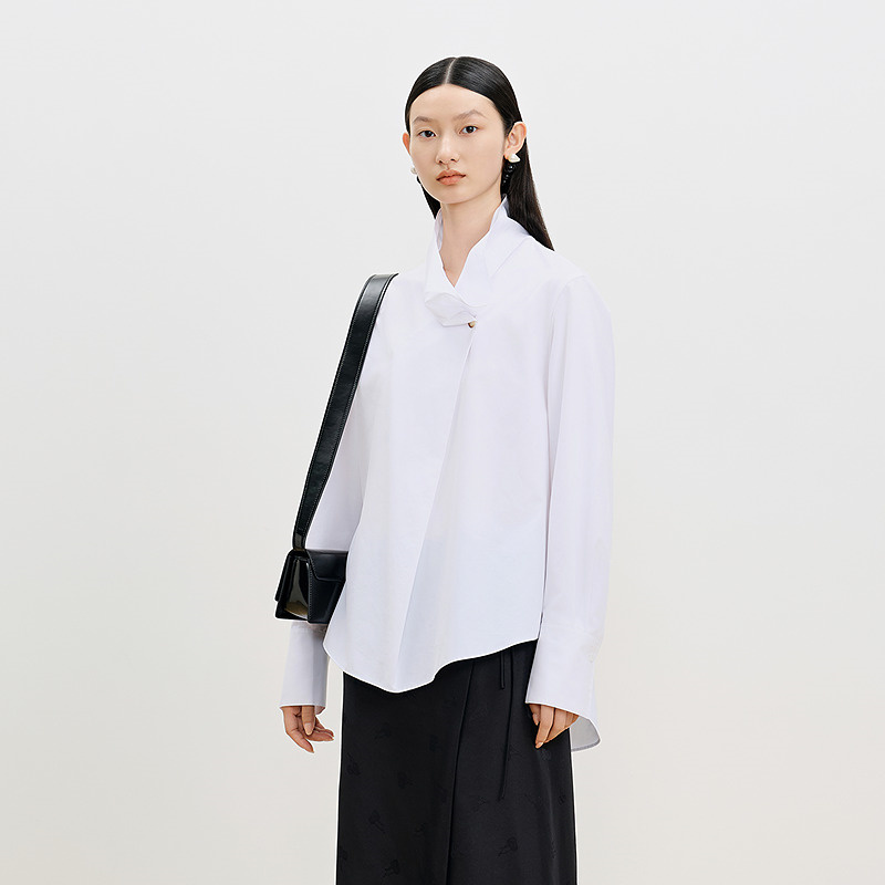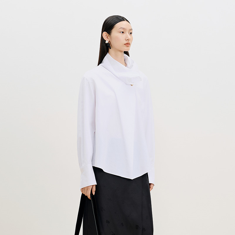 【商场同款】AUM噢姆秋季荡领设计感优雅棉感衬衫白色休闲上衣女