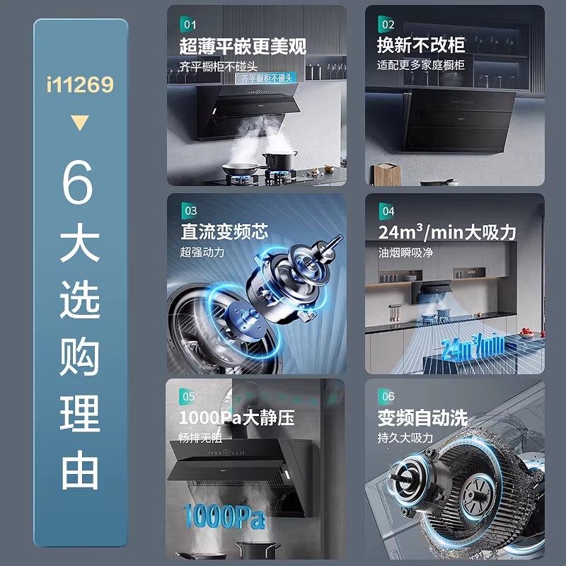 华帝油烟机i11269抽油烟机25m³家用厨房大吸力变频侧吸烟机官方
