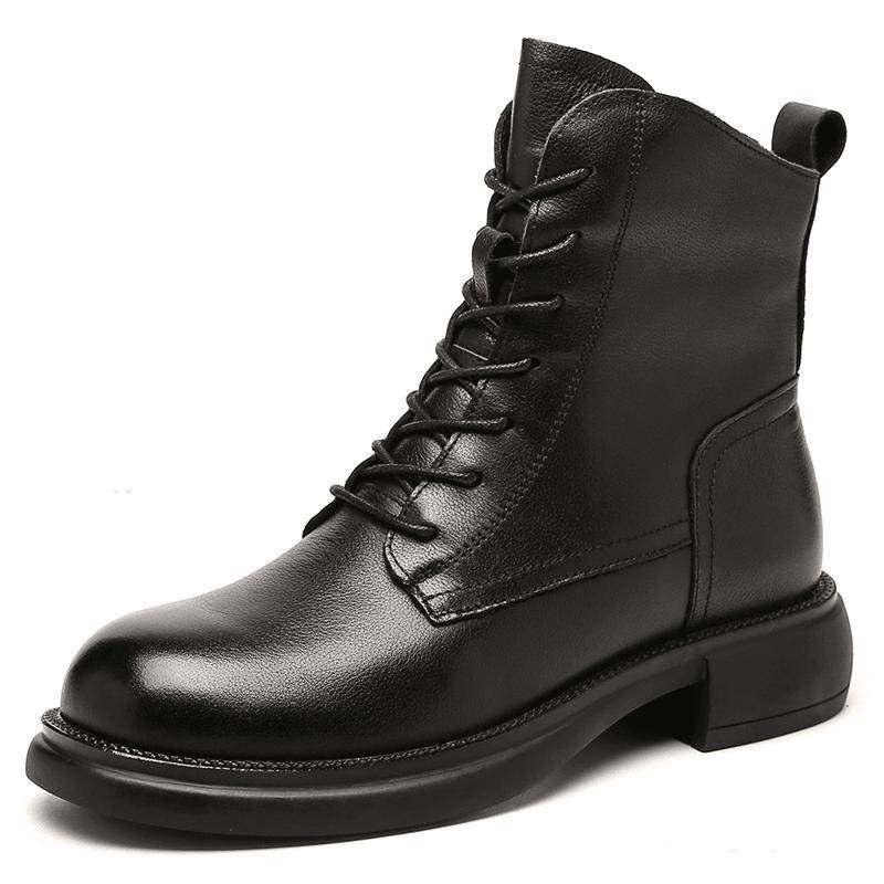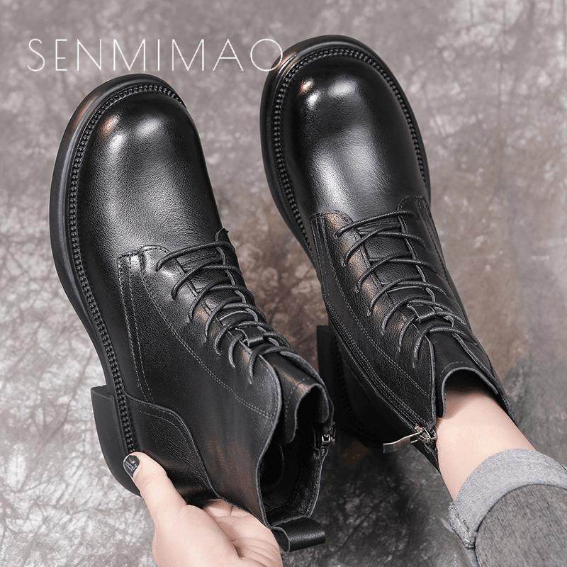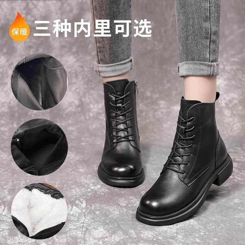 真皮英伦风马丁靴女款2025早秋冬季新款平底圆头复古黑色短靴子