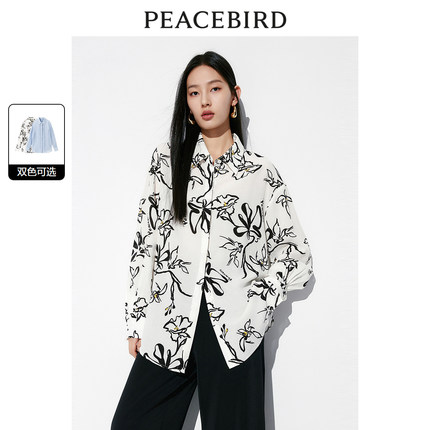 太平鸟 女士莱赛尔满版印花长袖衬衫24夏新气质后背开叉衬衣多色