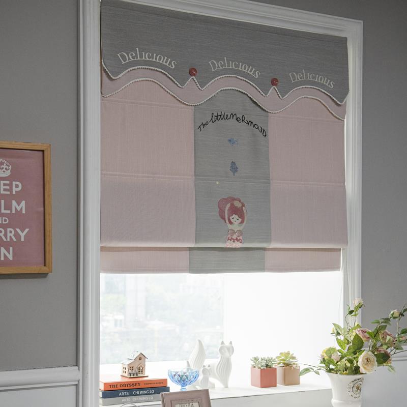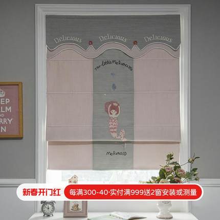 新款人鱼公主女孩房罗马帘北欧儿童房飘窗窗帘帘头定制小窗户