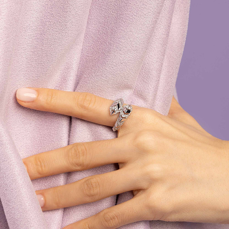 APM Monaco银白色密镶Kaa戒指手饰前卫现代简约设计感生日礼物