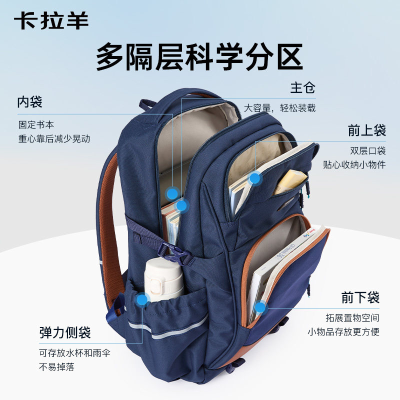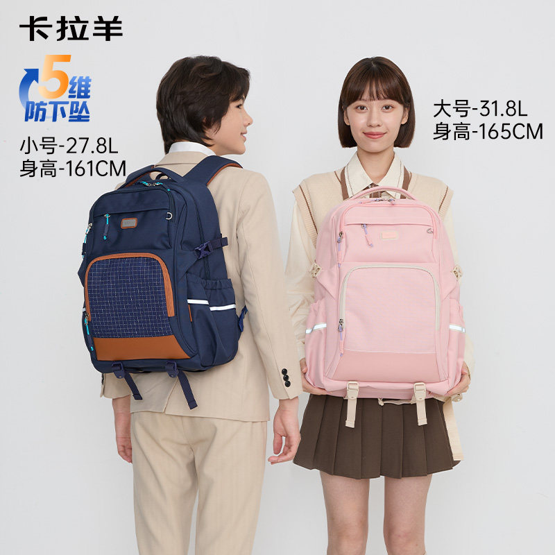 卡拉羊31L中学生书包大容量减负护脊风琴书包超轻男女生双肩包防水官方旗舰正品