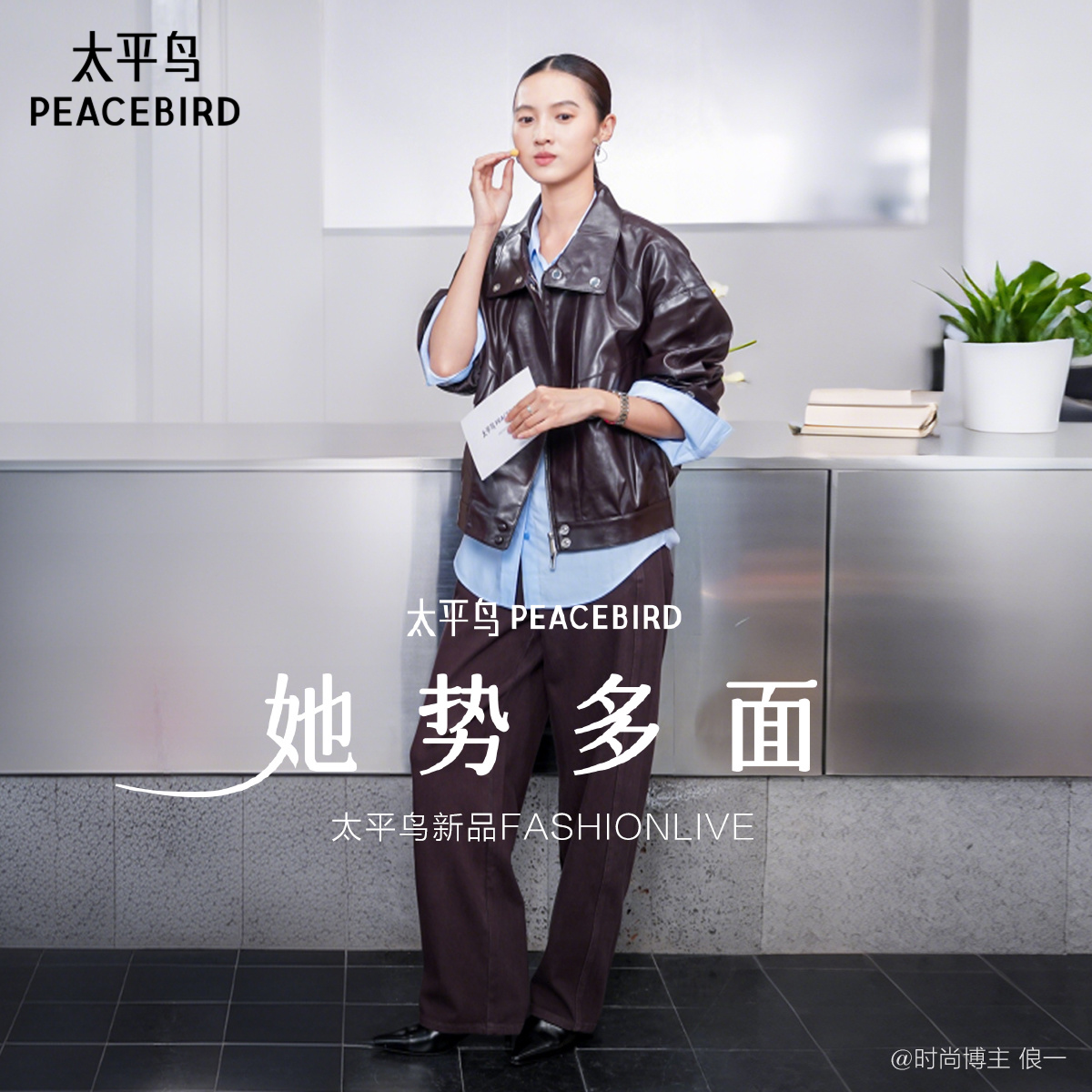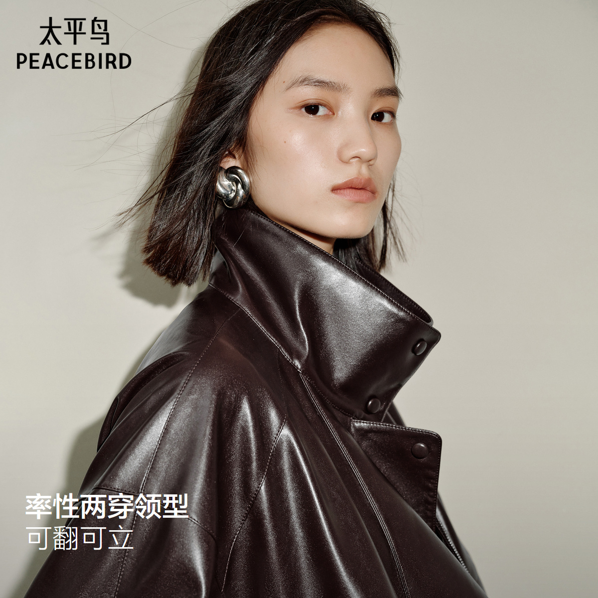 【秀场同款】太平鸟金属丝PU廓形外套女25无花果紫皮衣A1BBF3525