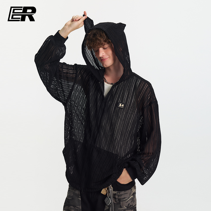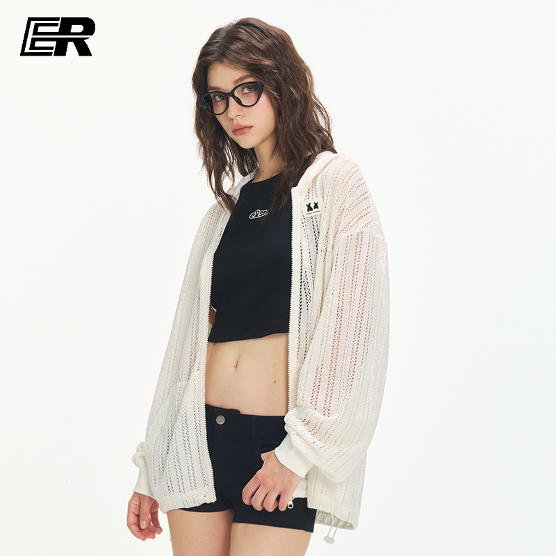 ER杜宾犬镂空连帽物理防晒罩衫女夏季新款美式设计感轻薄透气外套