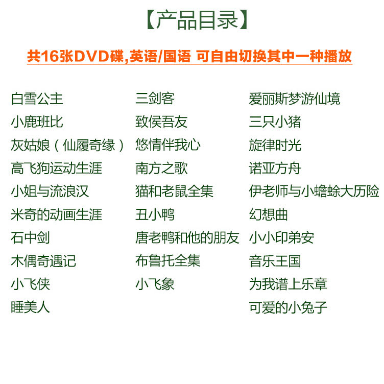 正版迪士尼英文动画片DVD碟片儿童片迪斯尼英语动漫电影光盘合集
