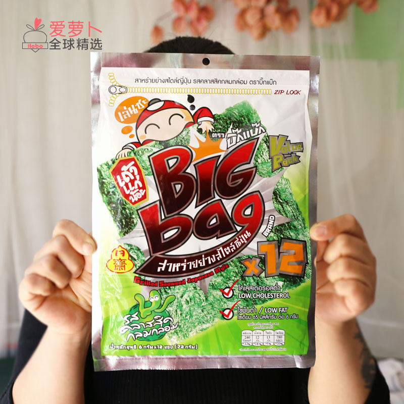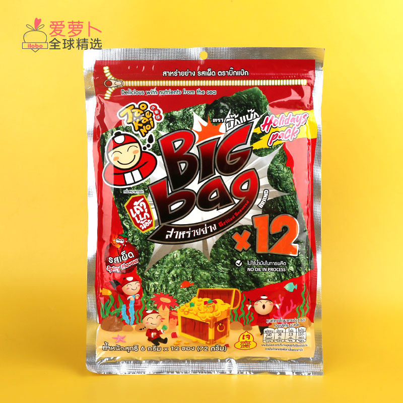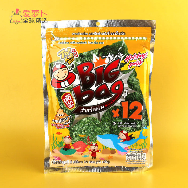 泰国Big bag海苔12大片小食脆紫菜Tao Kae Noi老板仔鱿鱼辣烧烤