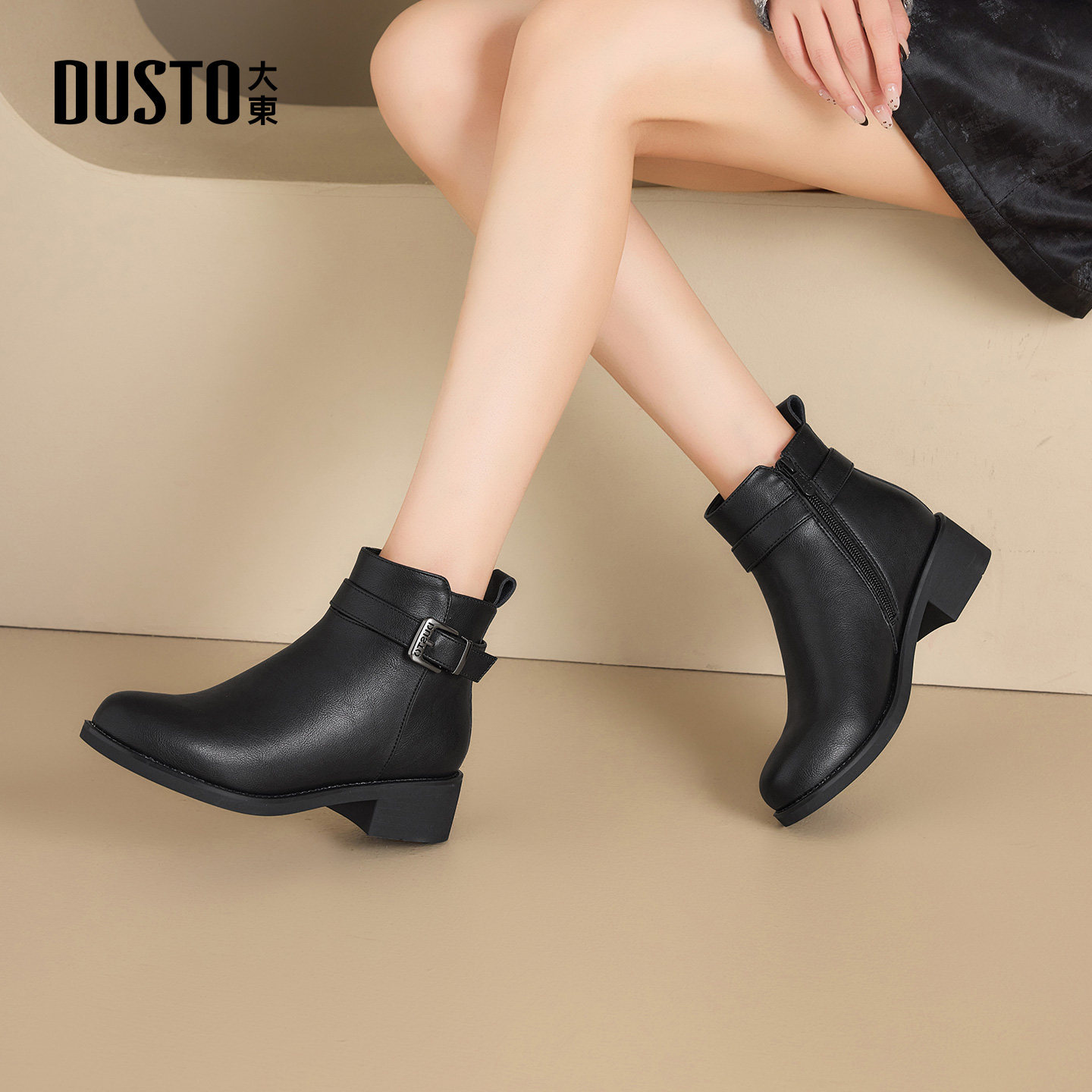 大东dd马丁靴女2025高跟秋冬女鞋妈妈鞋子女圆头法式短靴瘦瘦靴女