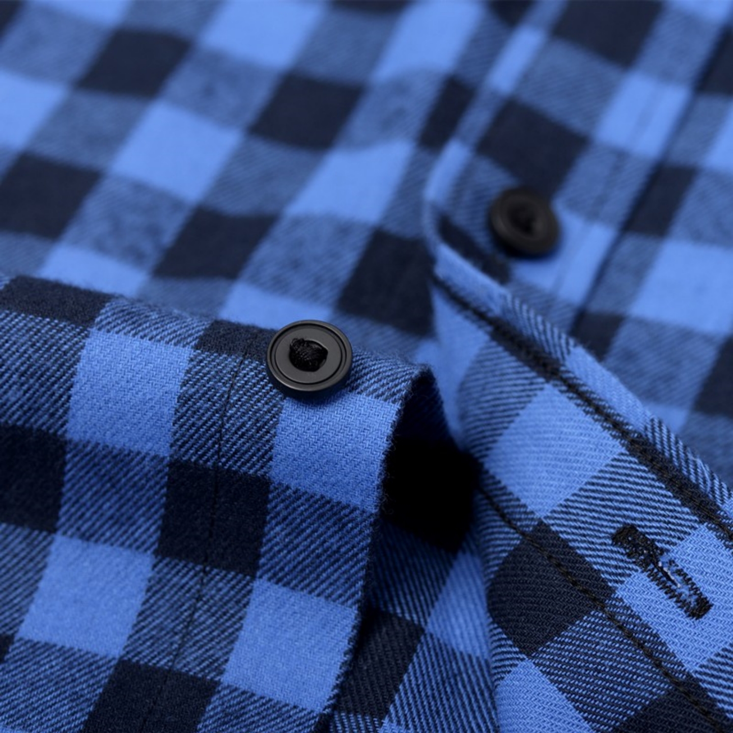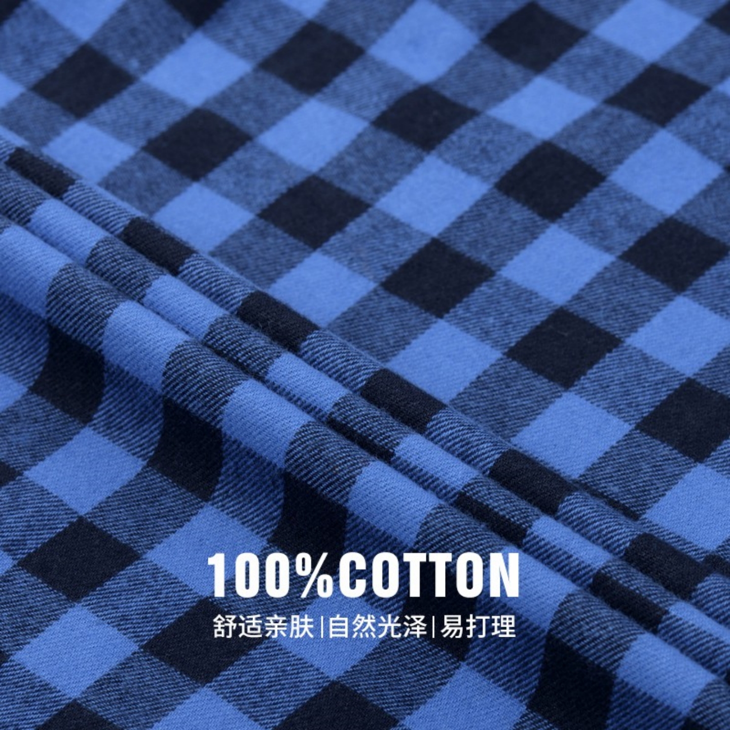 朗蒙纯棉磨毛格子衬衫男长袖春季新款中青年上衣修身休闲男士衬衣