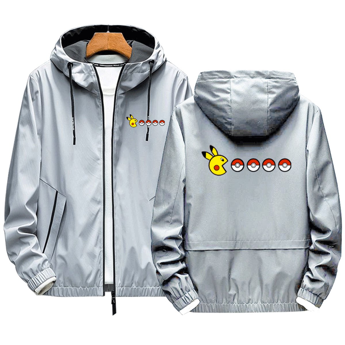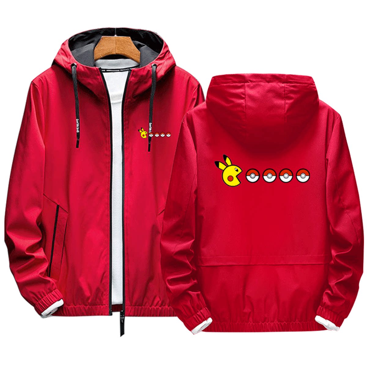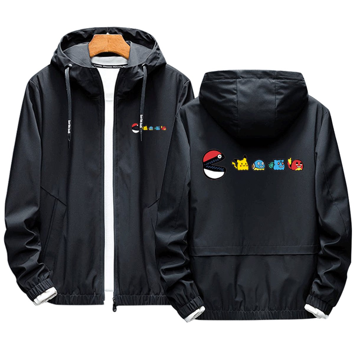 星之卡比吃豆人联名精灵宝可梦皮卡丘男女情侣定制连帽外套夹克服