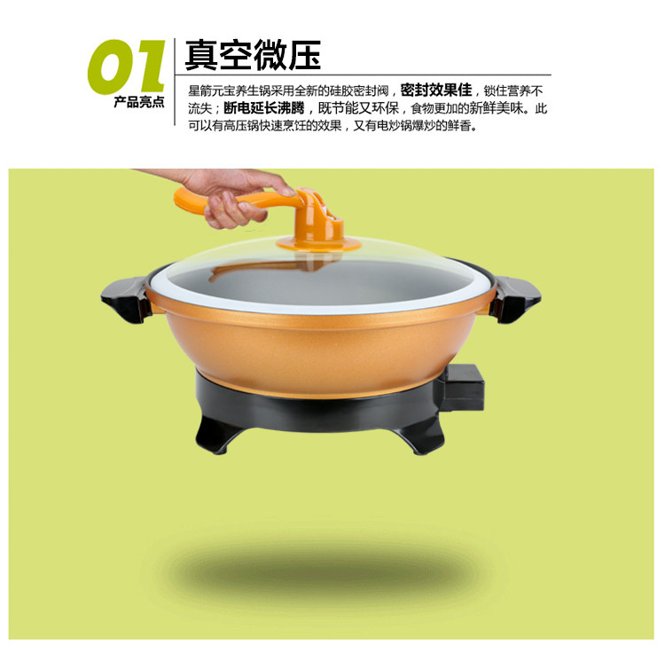 星箭多功能电热锅家用黄金元宝电炒锅火锅锅巴粥饭电煮锅真空养生