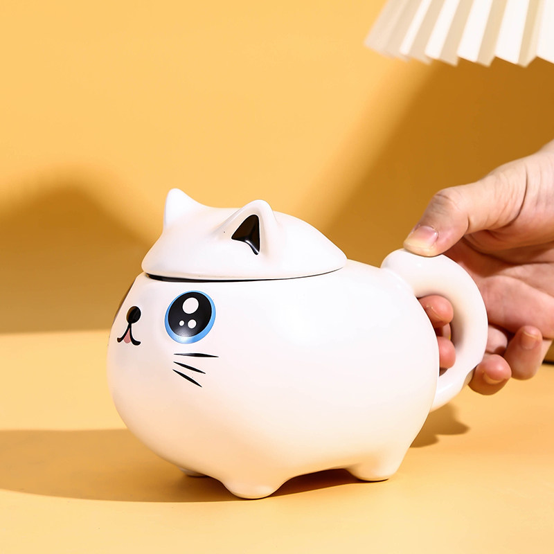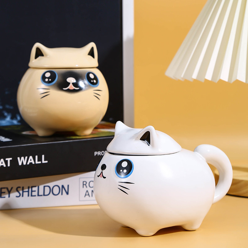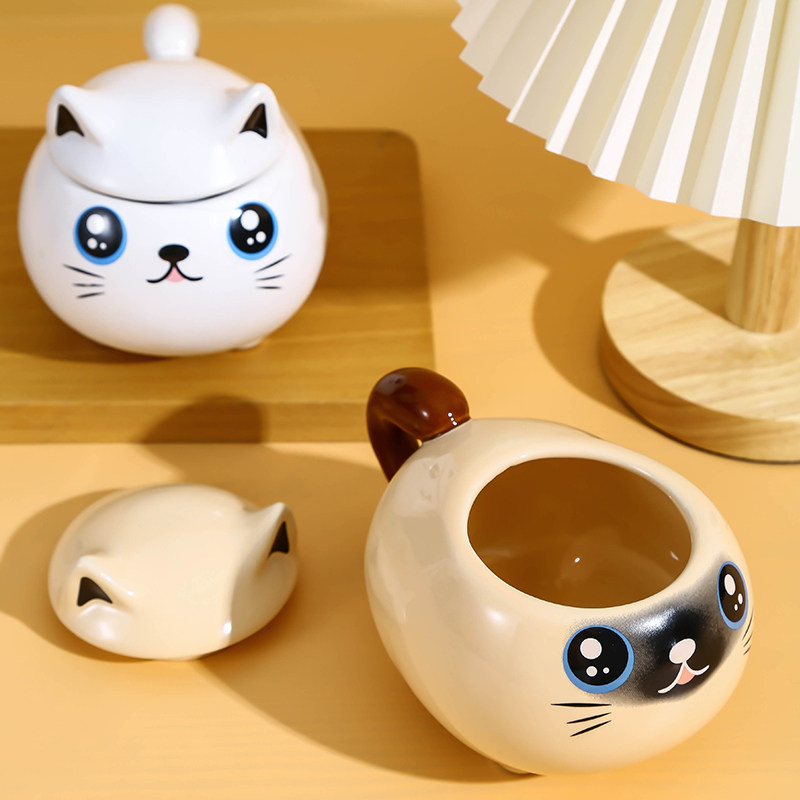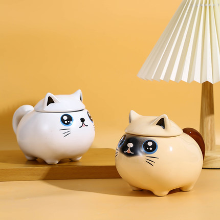 可爱杯子暹罗猫咪马克杯带盖勺陶瓷水杯家用大容量创意生日礼物女