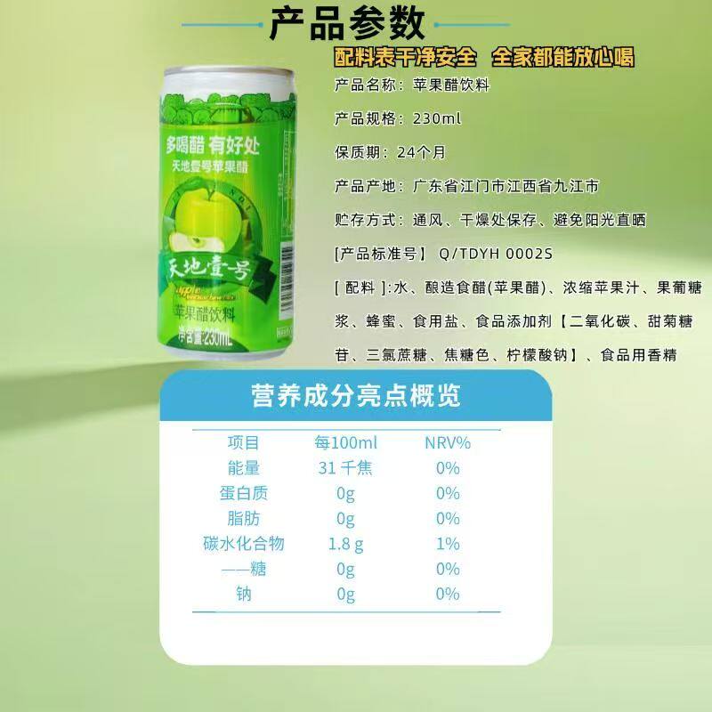 天地壹号苹果醋饮料230ml酸爽可口0脂肪聚餐开胃清爽解腻