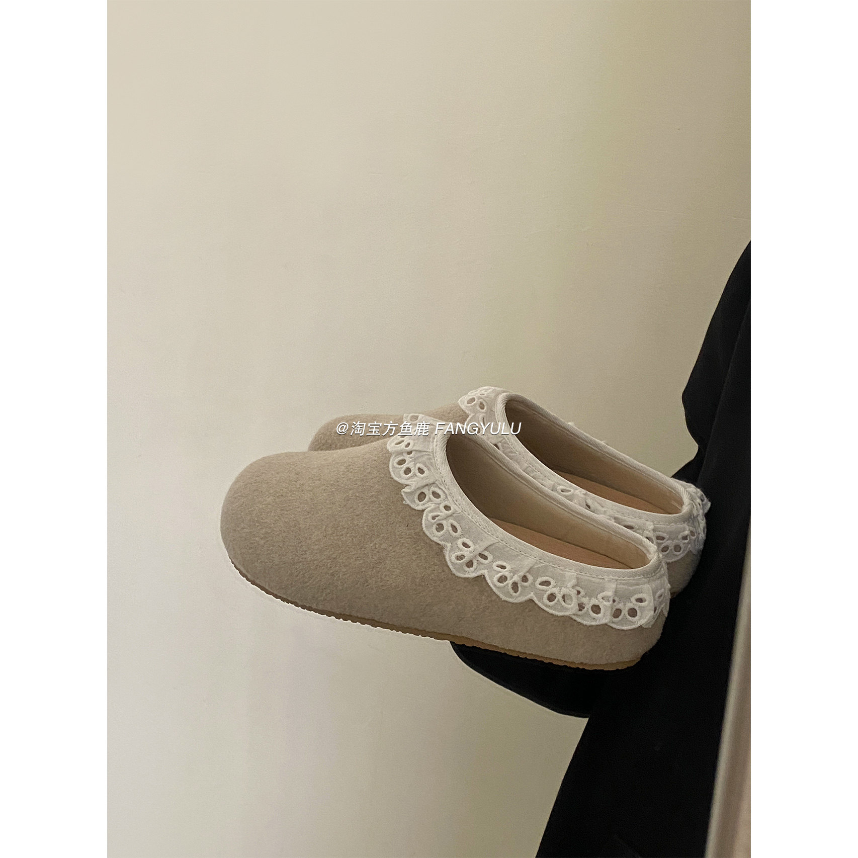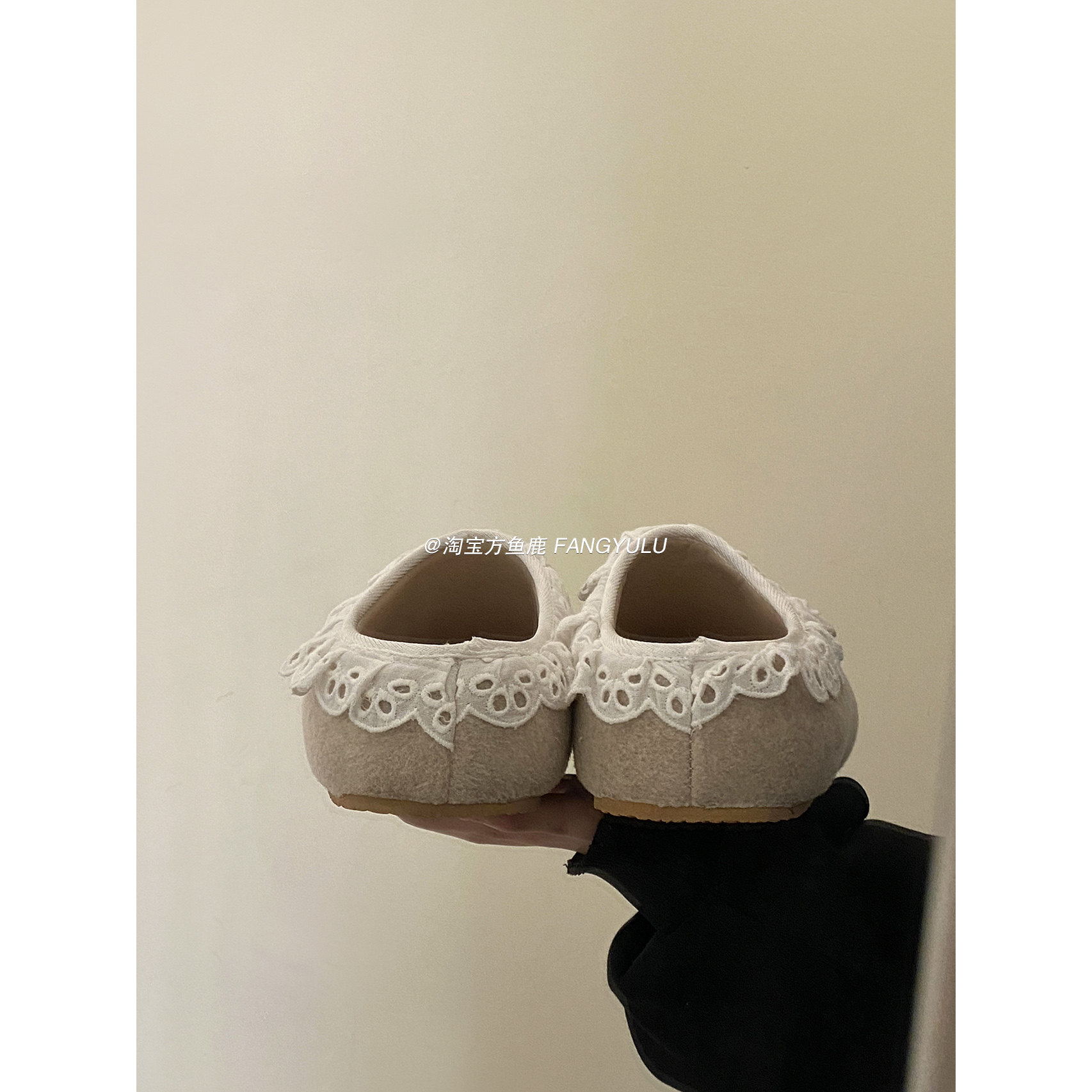 方鱼鹿 蕾丝花边一脚蹬拖鞋女2025夏季外穿百搭厚底勃肯半拖鞋ins