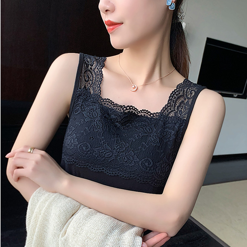 蕾丝背心女时尚方领吊带遮肚子MM气质外穿黑色白色打底紧身上衣