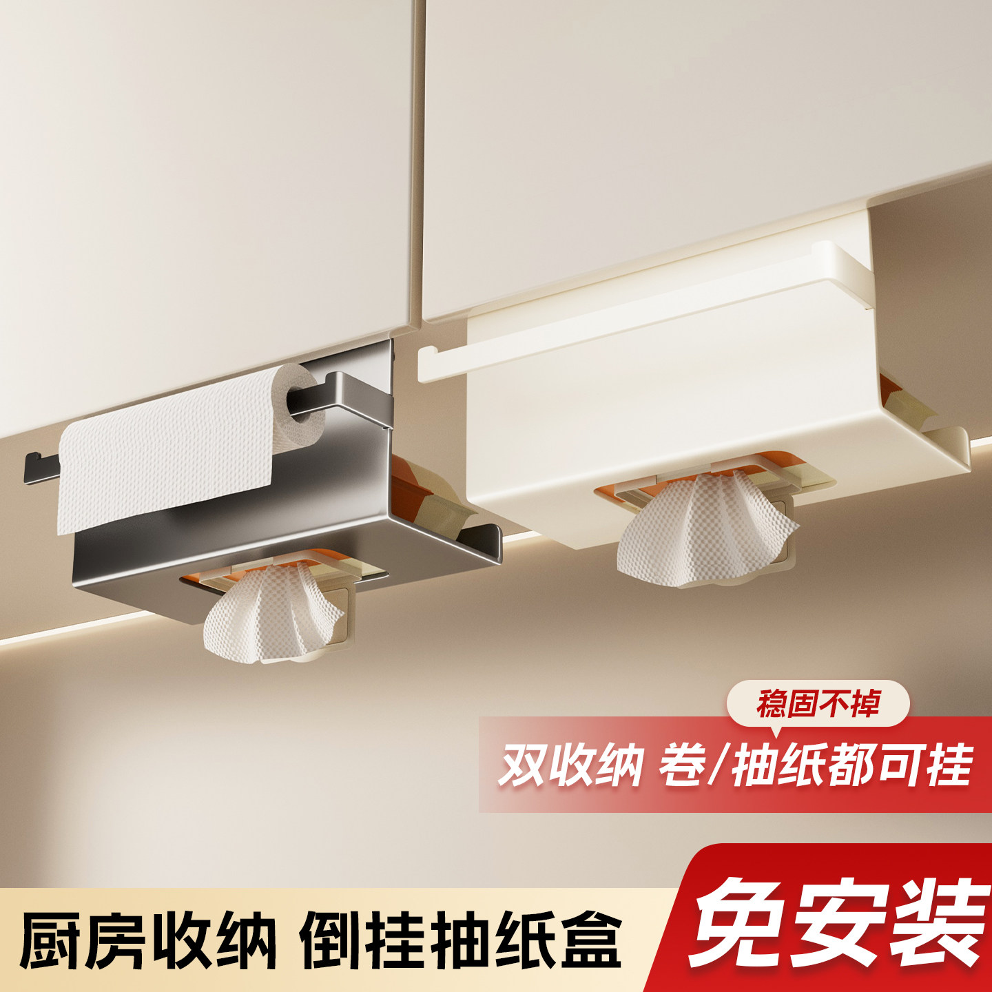 厨房湿巾纸巾盒湿纸巾倒挂置物架抹布抽纸盒保鲜膜用纸挂架收纳盒