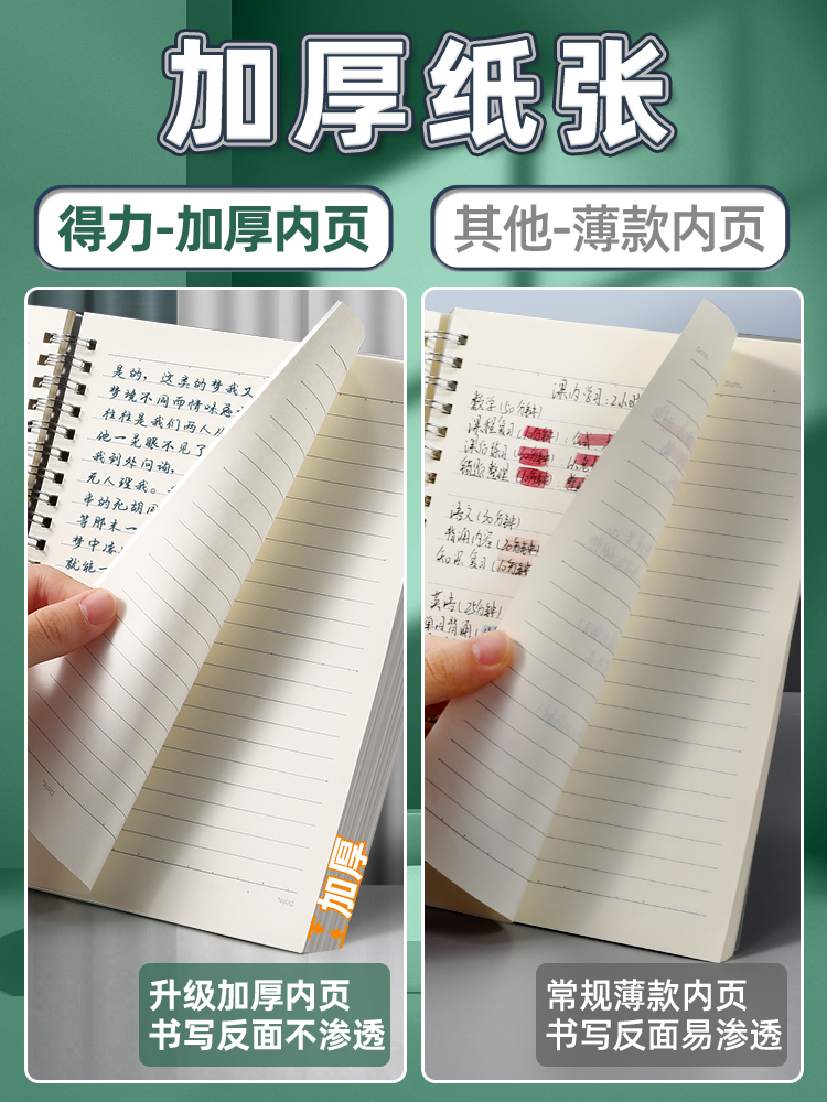 得力线圈本笔记本本子考研横线b5初中生加厚网格本活页本日记本文