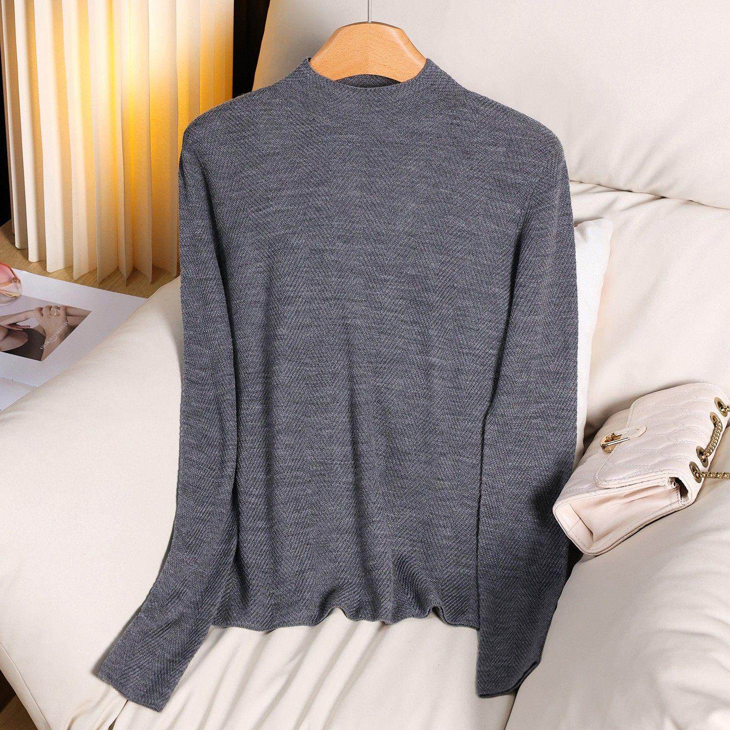 高级灰色肌理感半高领针织打底衫女秋冬西装内搭毛衣巨好看上衣