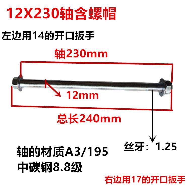 电动车中轴摩托车中轴电动三轮车中轴12mm/10/15/180/190/250螺帽