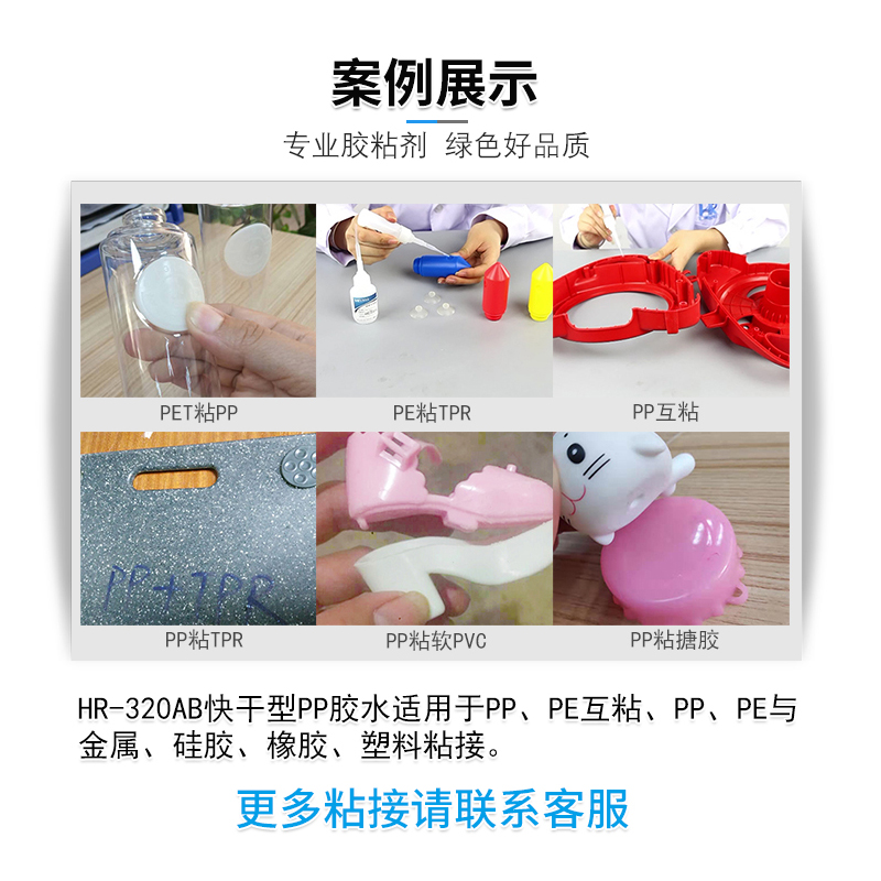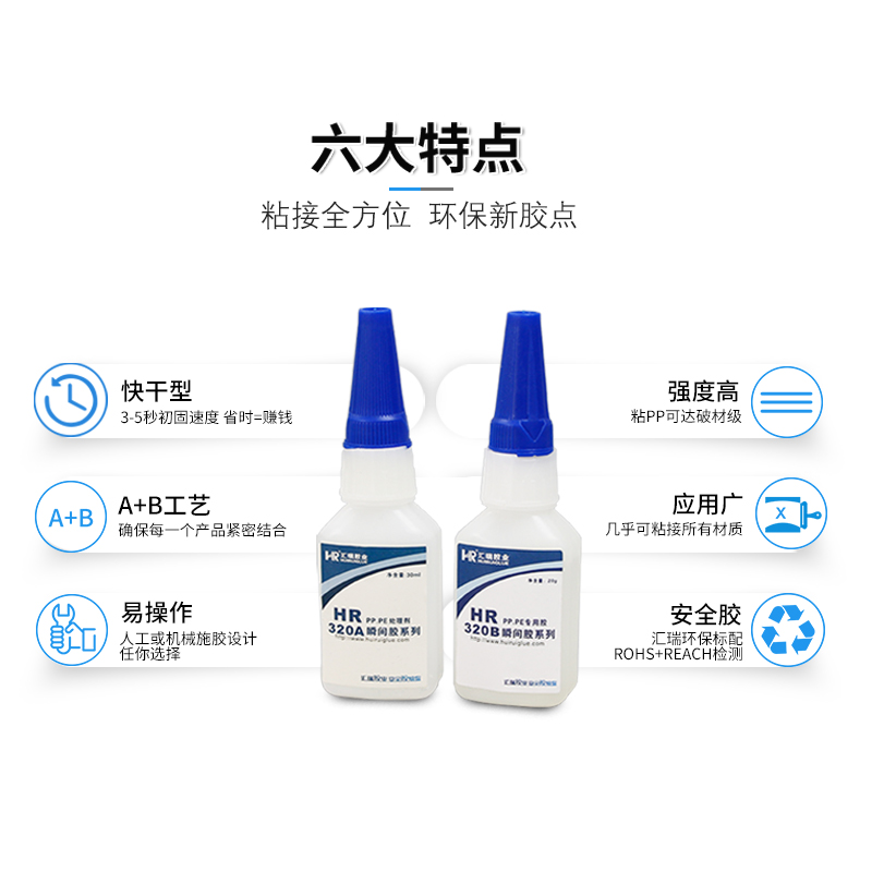 汇瑞320AB快干pp胶水 聚丙烯粘金属塑料硅胶低白化强力粘PP瞬间胶