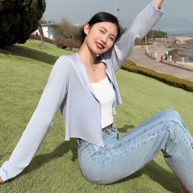 冰丝开衫女防晒夏季薄款针织新款长袖上衣小个子短款外搭罩衫外套