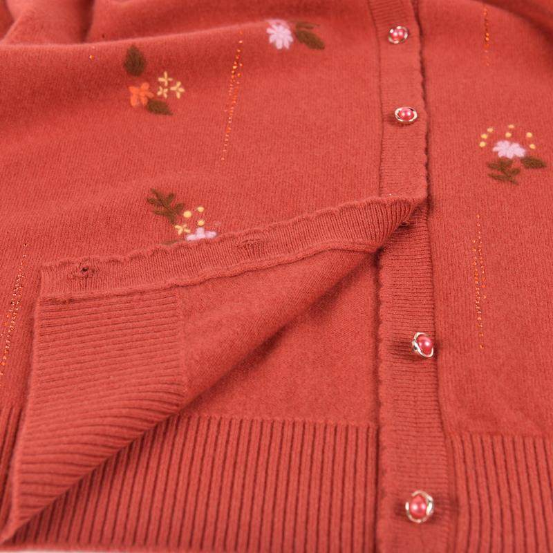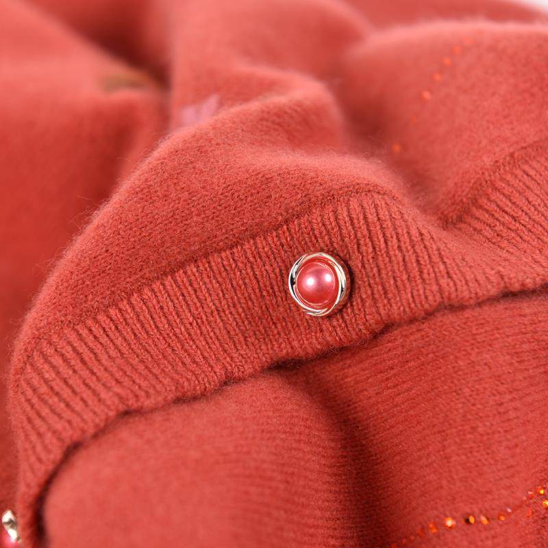 洋气妈妈绣花100%纯羊毛绒衫秋冬装女开衫毛衣中老年宽松针织外套