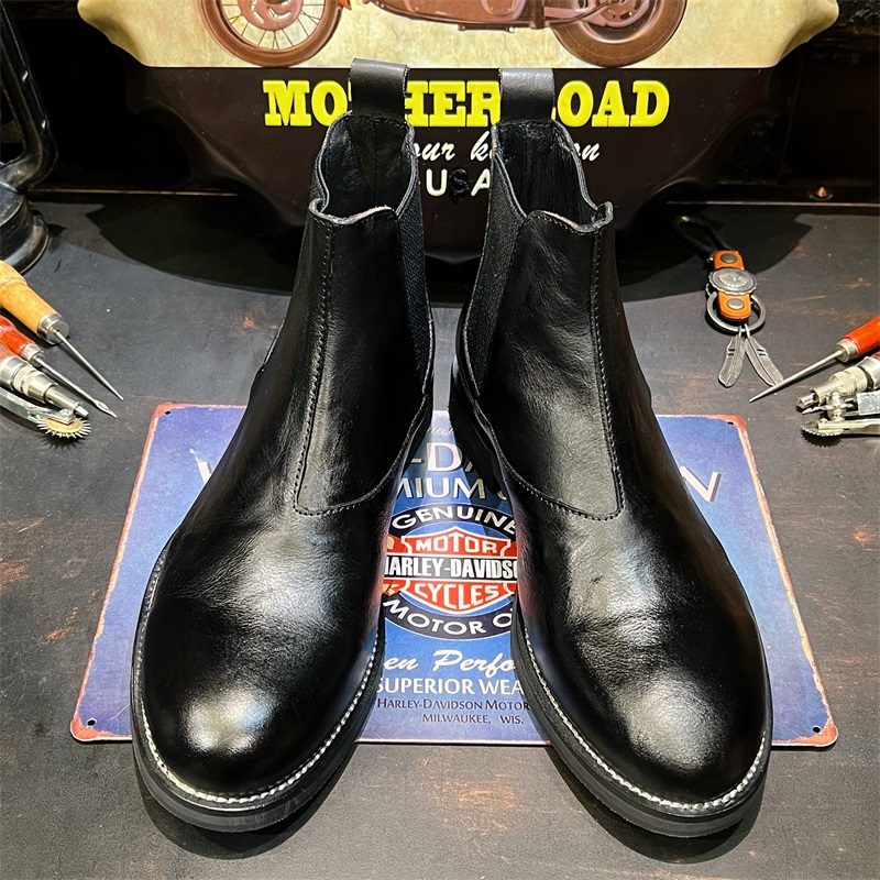 美式复古英伦风中帮黑色切尔西靴男鞋真皮马丁短靴圆头层牛皮靴子