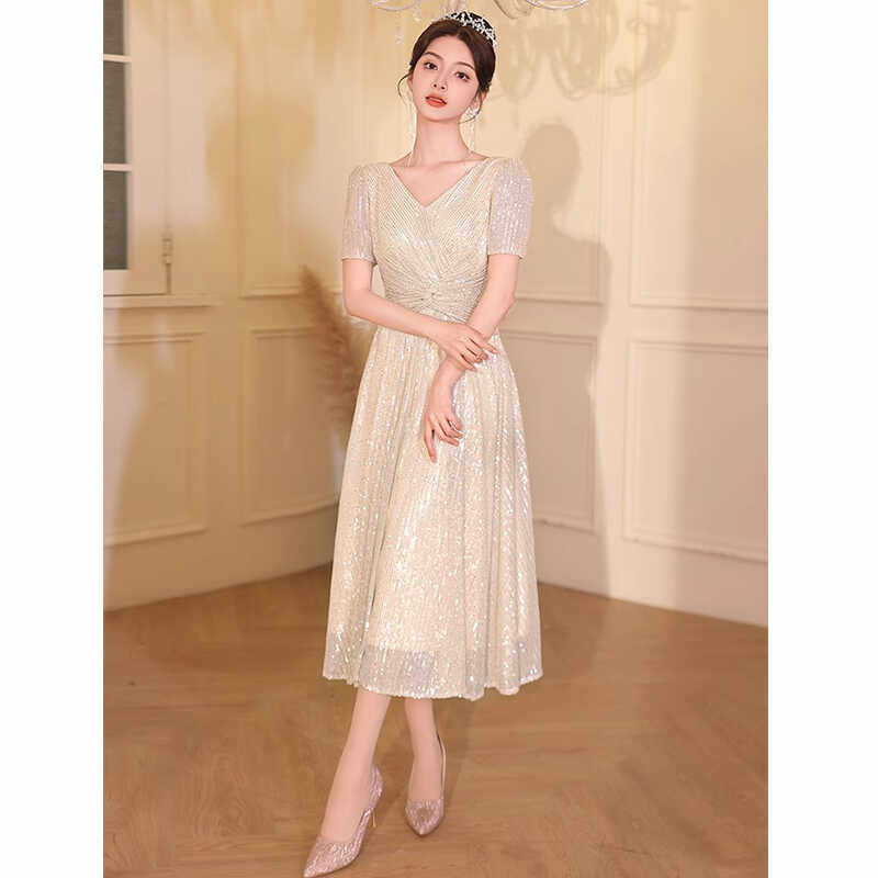 香槟色晚礼服女高级感2025新款宴会气质轻奢主持人亮片演出合唱服