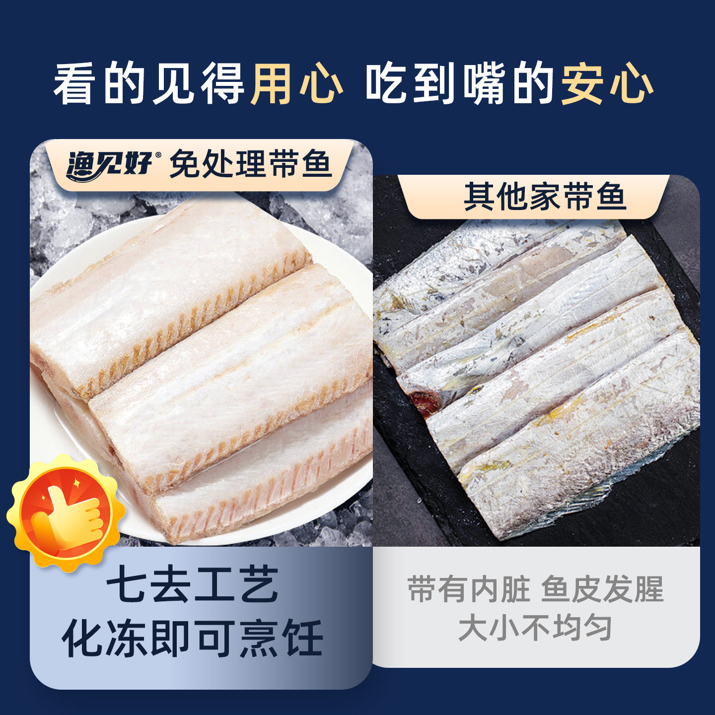 带鱼段中段特大免洗去内脏深海野生海带鱼半成品新鲜商用带鱼段