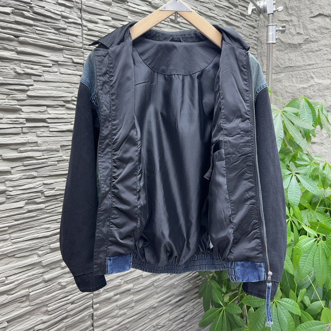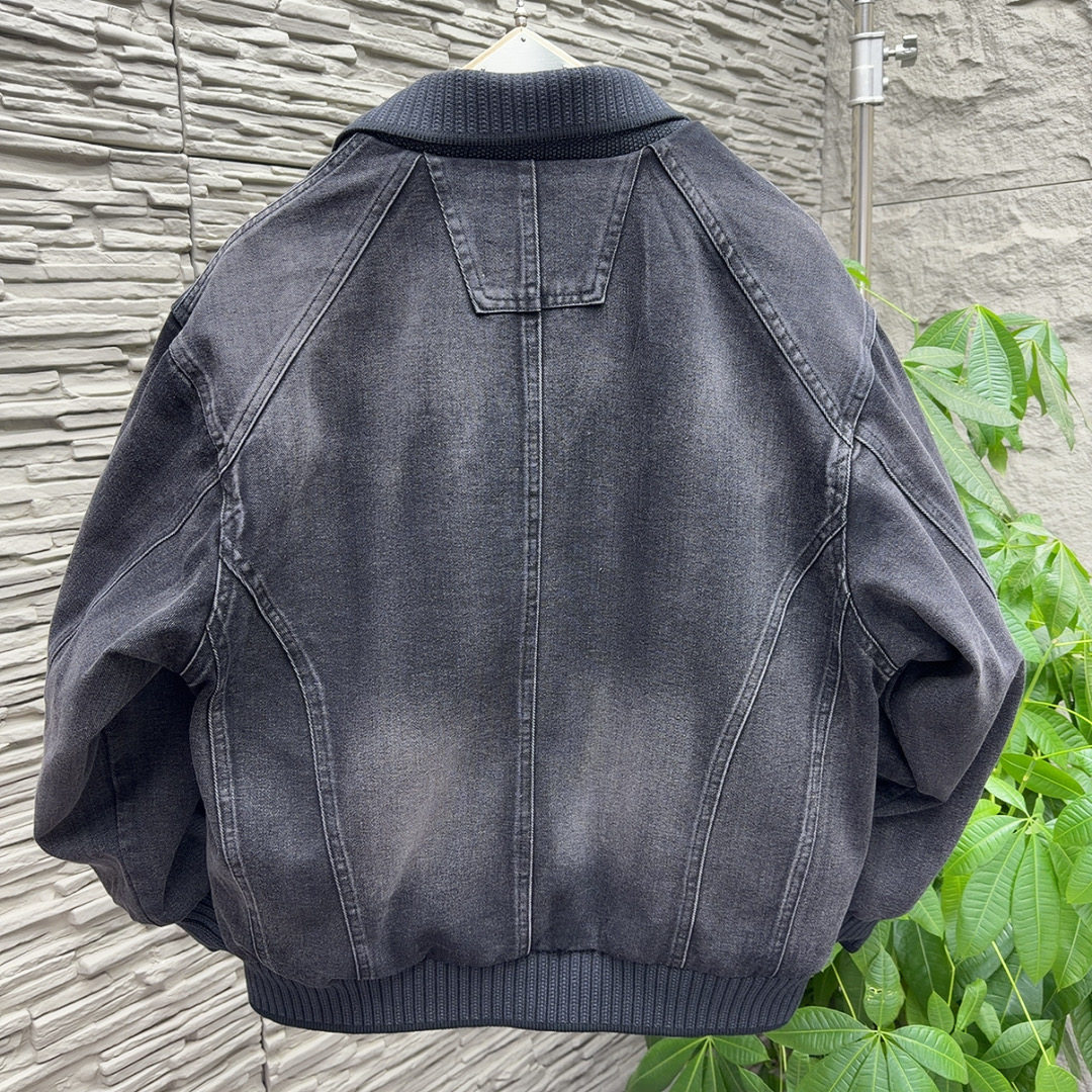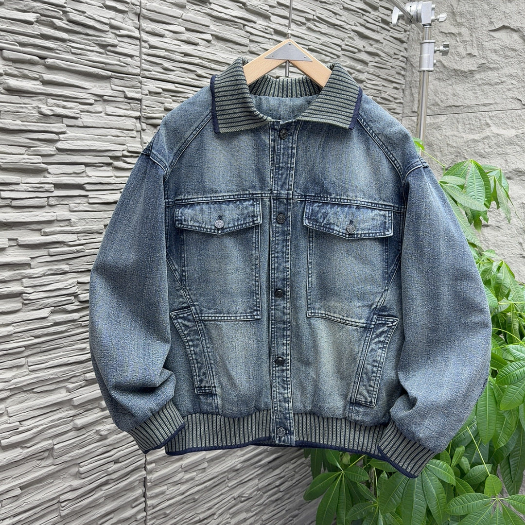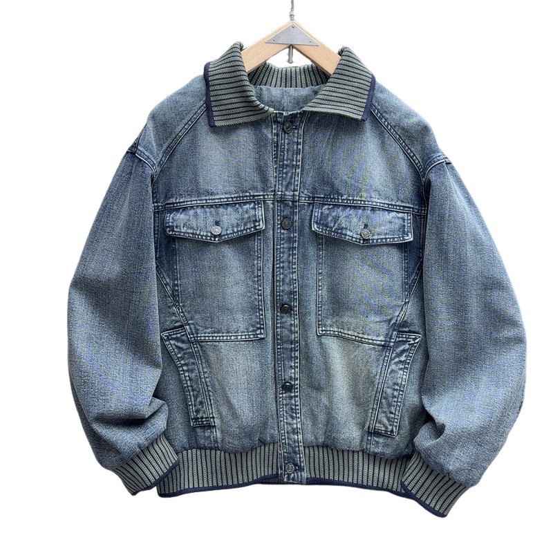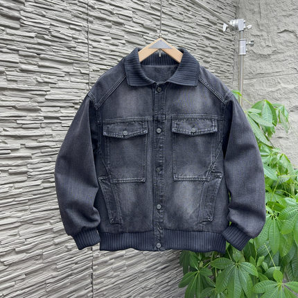 春新款美式潮牌重磅外套男士立体剪裁工装风拼接翻领宽松牛仔夹克