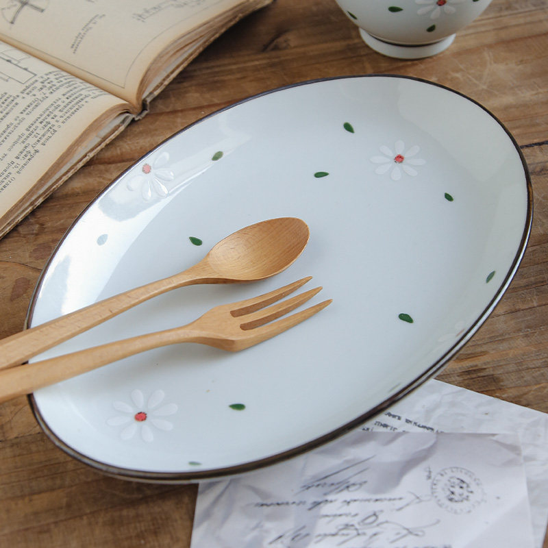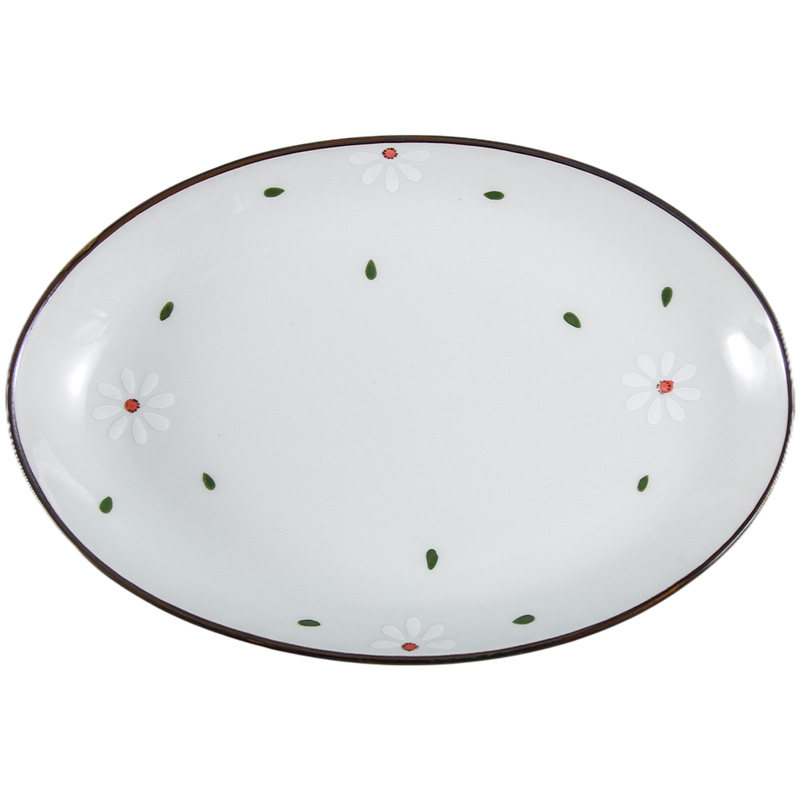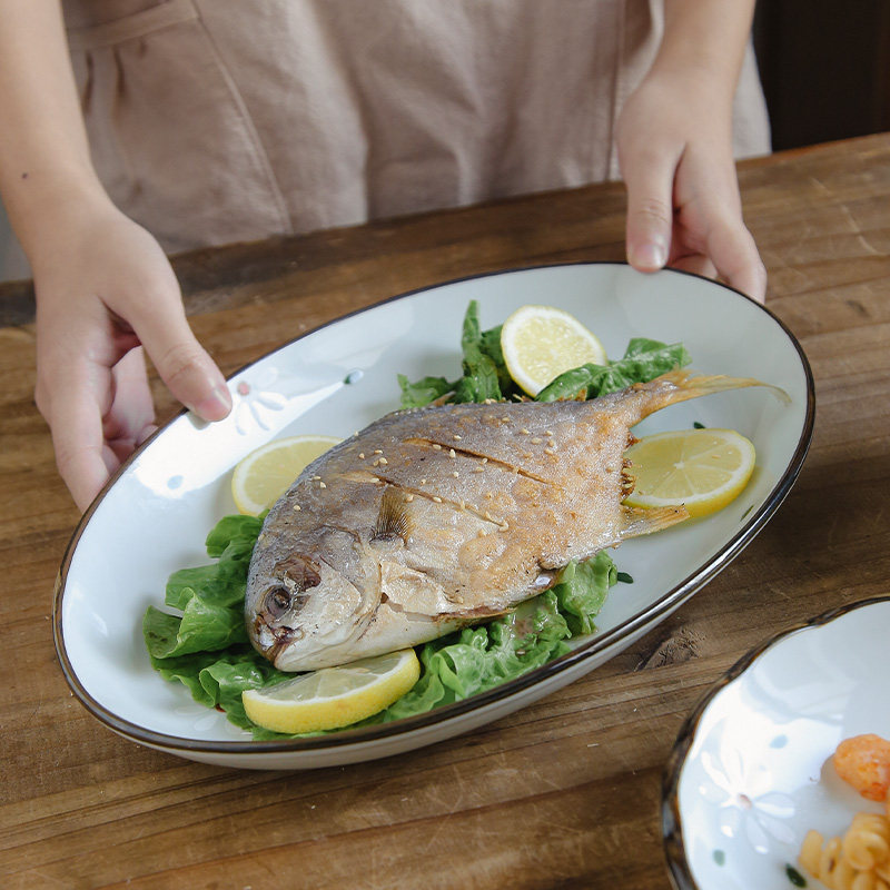 日式创意雏菊鱼盘釉下彩陶瓷餐具30厘米椭圆盘鱼盘菜盘果盘多用盘