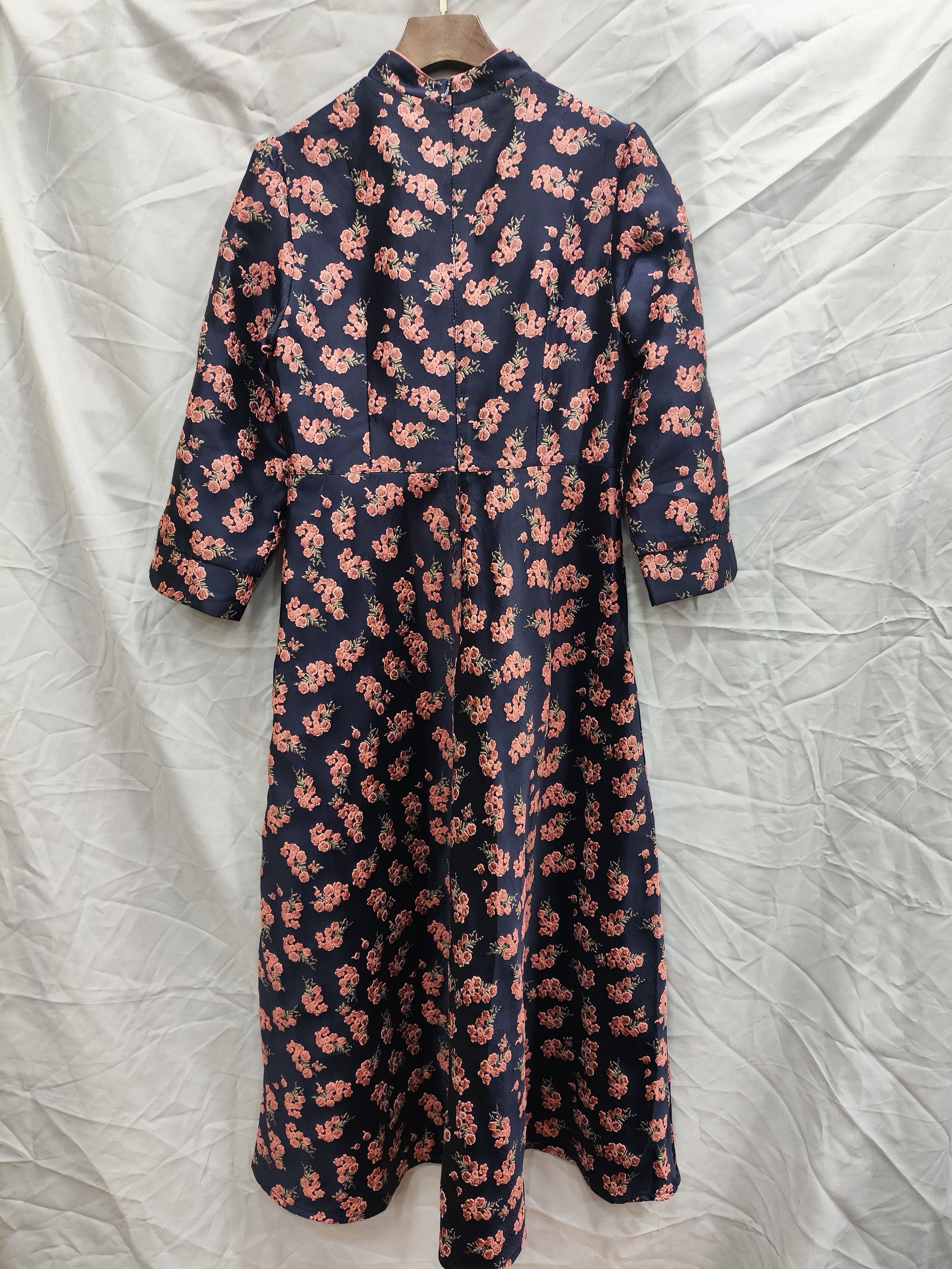商场同款中国风立领盘扣收腰显瘦印花长袖春秋连衣裙8013-2