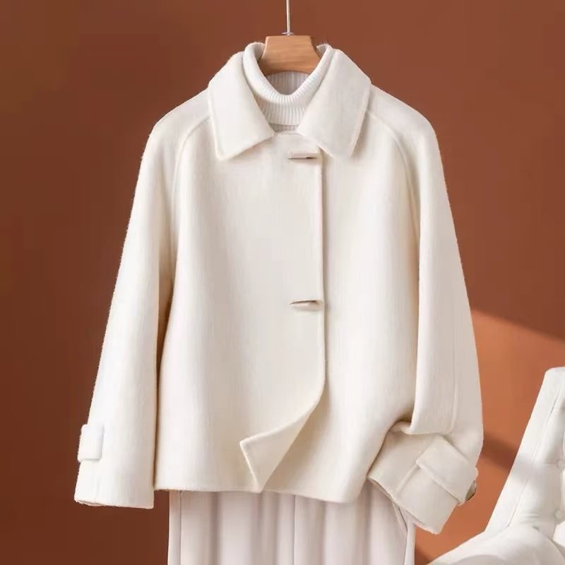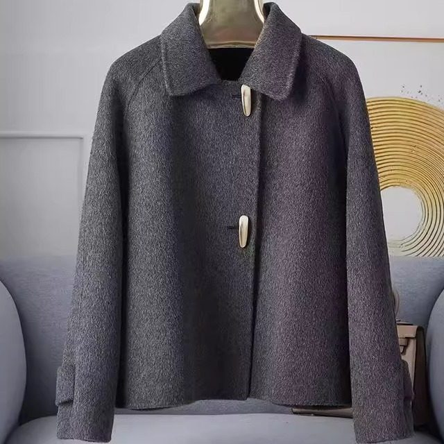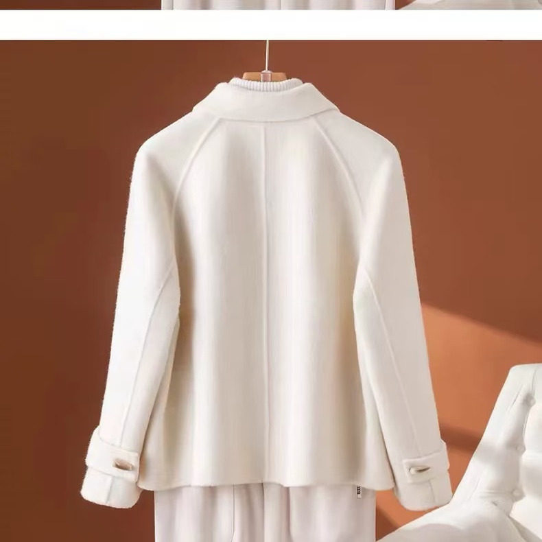 双面羊绒大衣女短款小个子高端减龄牛角扣羊毛呢外套秋冬新款
