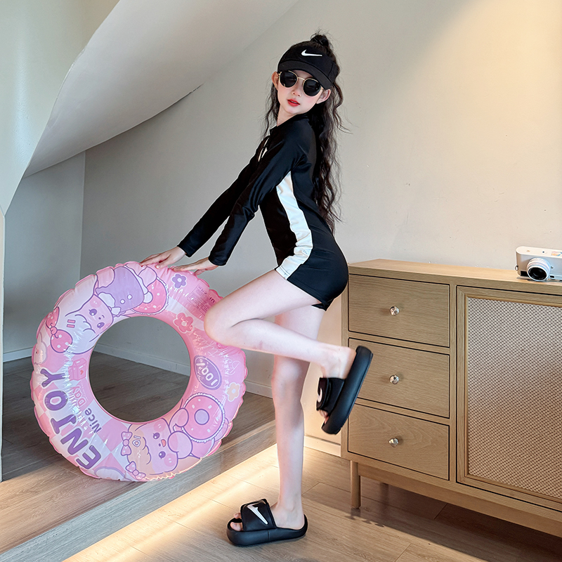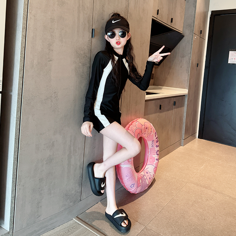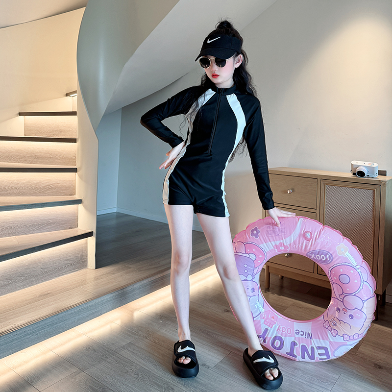 女童泳衣夏季2025新款儿童专业训练泳装女大童网红长袖连体游泳衣