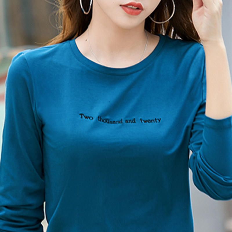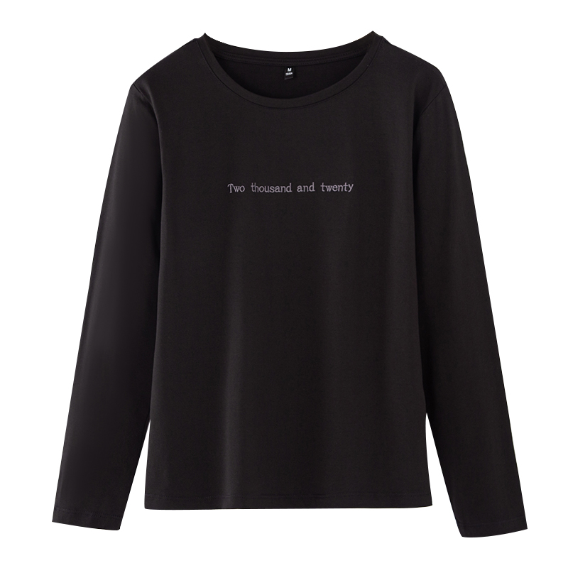 春秋新款妈妈纯棉长袖t恤女大码宽松刺绣卡其色上衣t