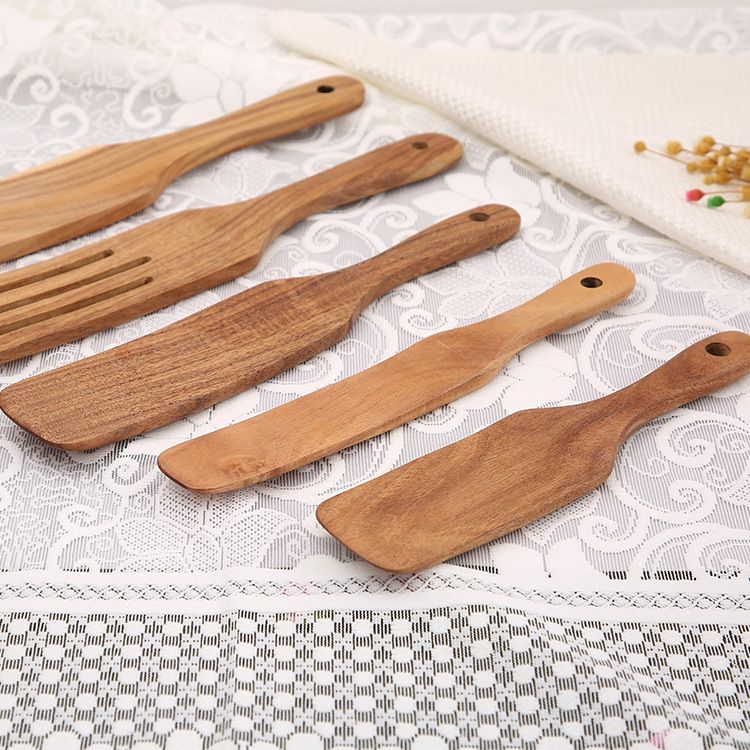 柚木锅铲木质沙拉料理铲长柄搅拌木铲厨房烹饪铲厂家直营logo