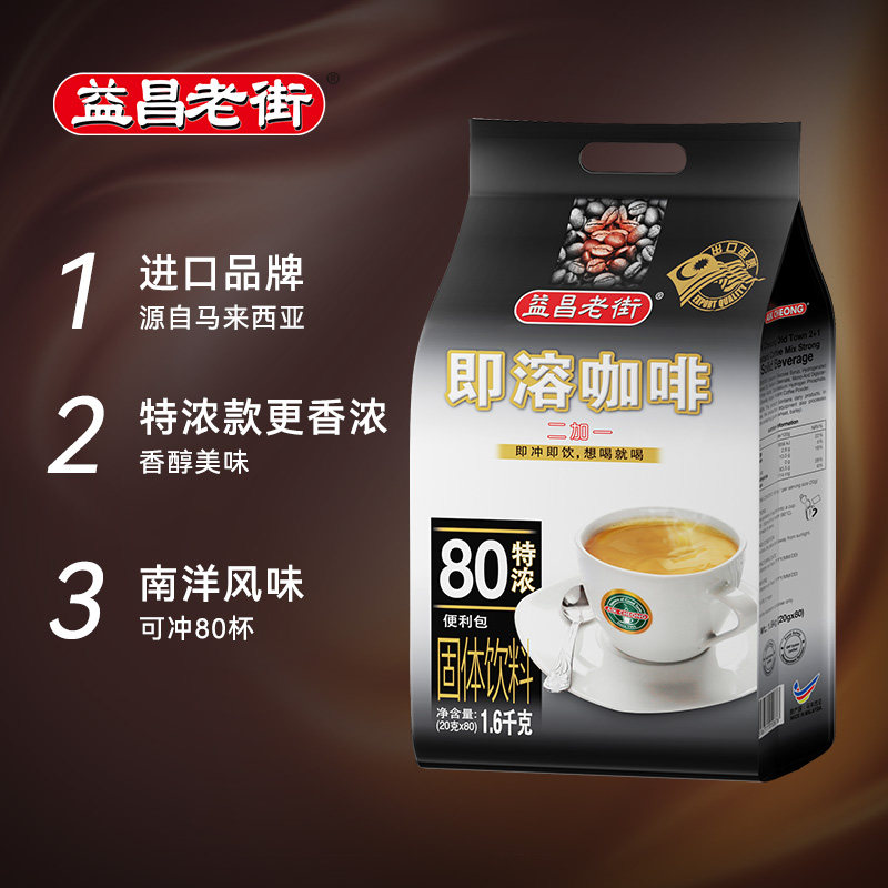 马来西亚原装进口益昌老街三合一速溶特浓咖啡粉40条学生提神袋装
