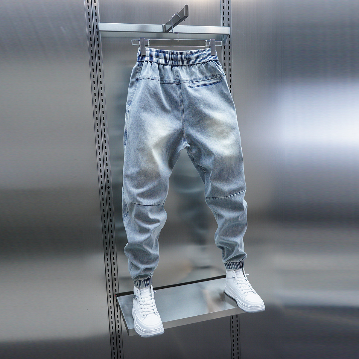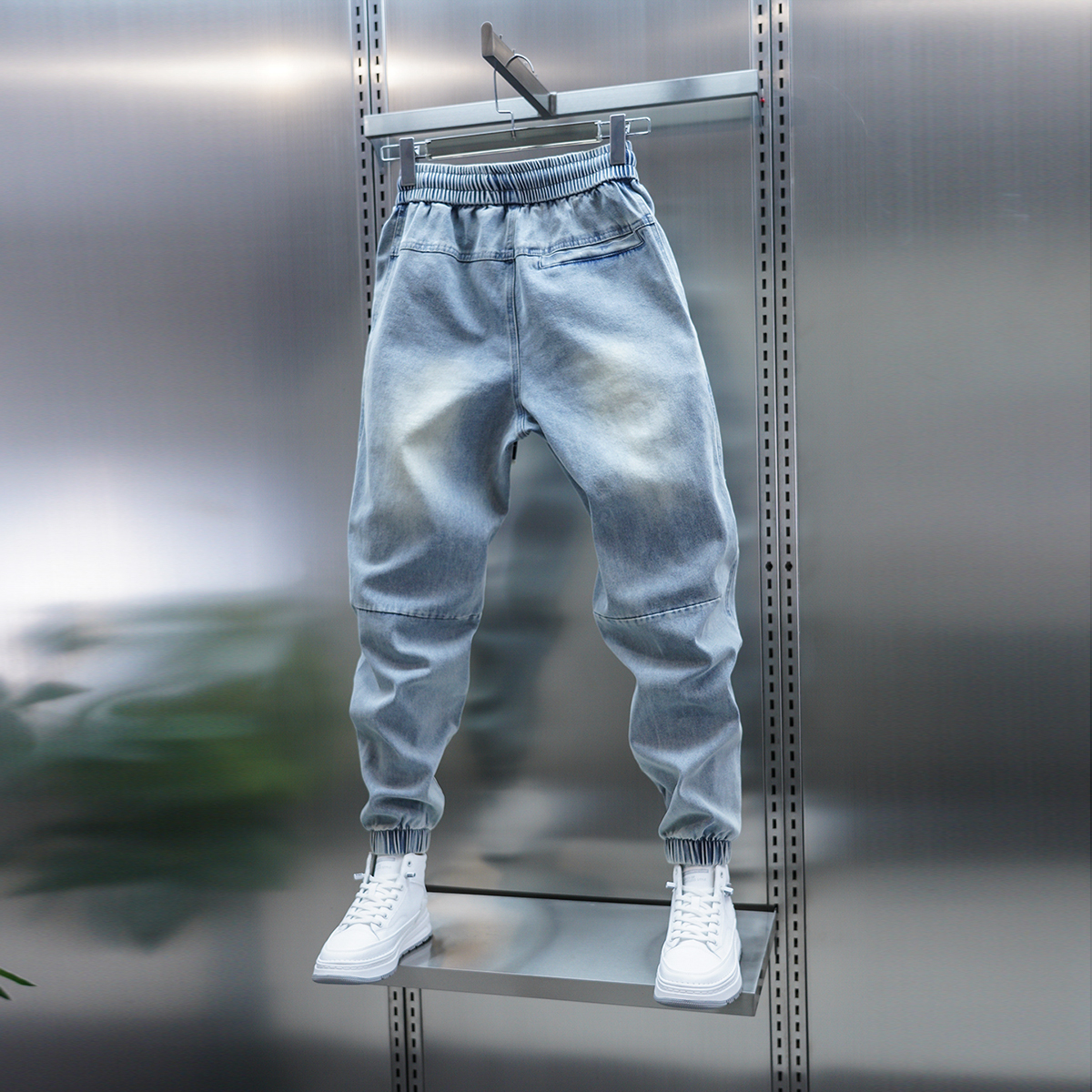 男士新款牛仔裤潮流水洗宽松束脚哈伦裤时尚松紧腰小脚休闲裤