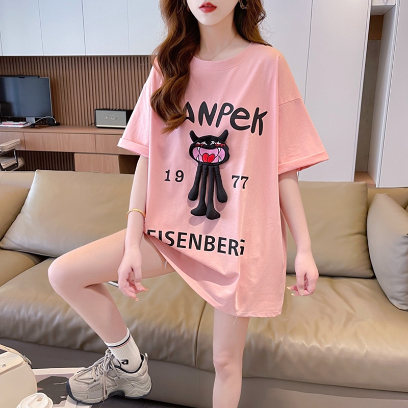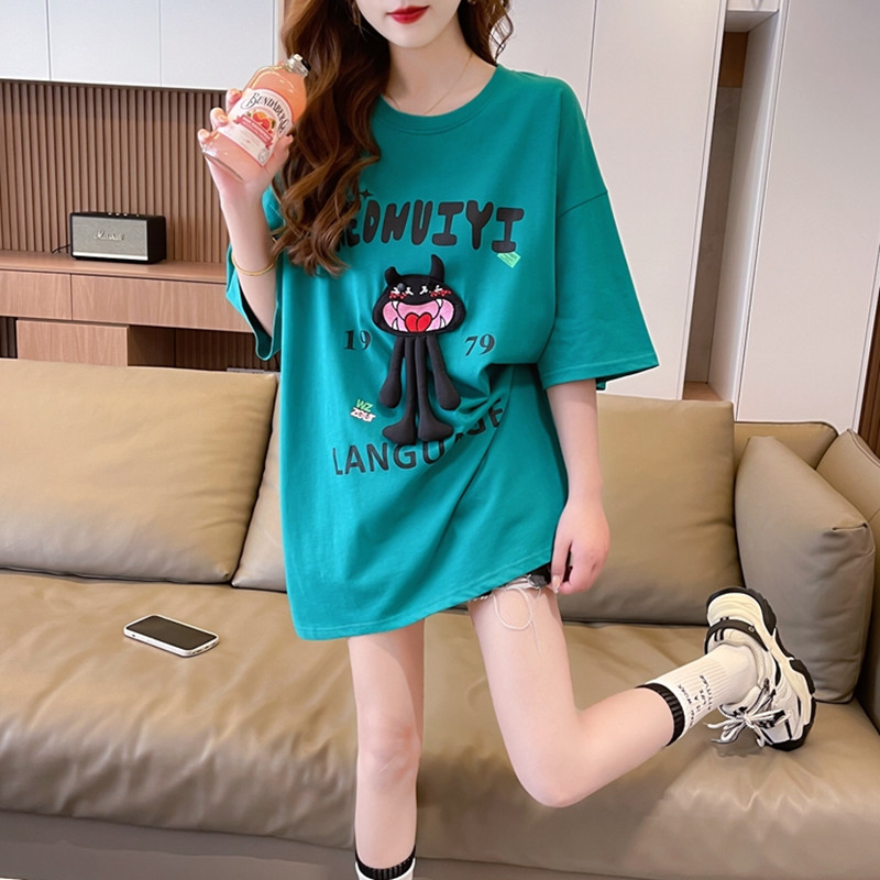 夏季宽松中长款纯棉短袖T恤