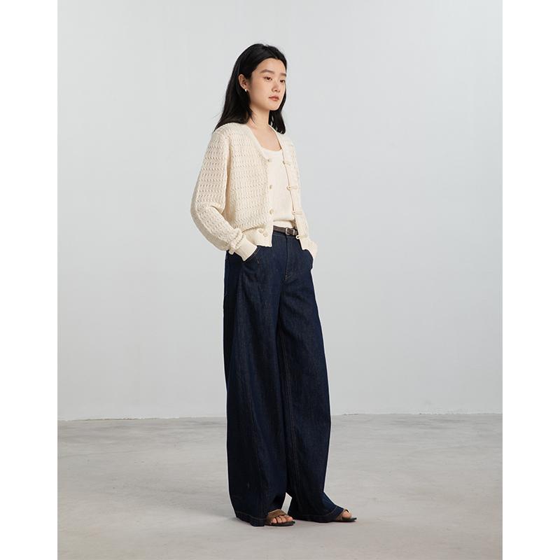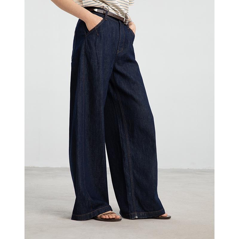 ziilam枝蓝 靛麻牛仔长裤女春夏棉亚麻女裤原创设计阔腿牛仔裤