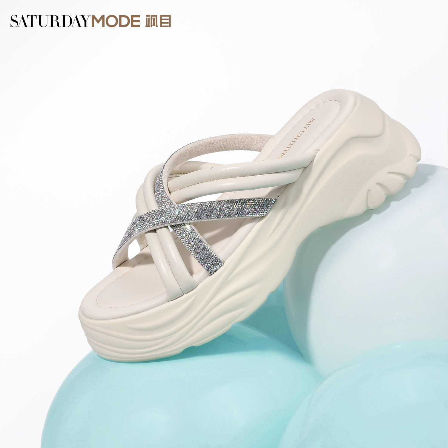 商场同款夏季新款超火松糕厚底拖鞋女外穿小个子增高一字凉拖