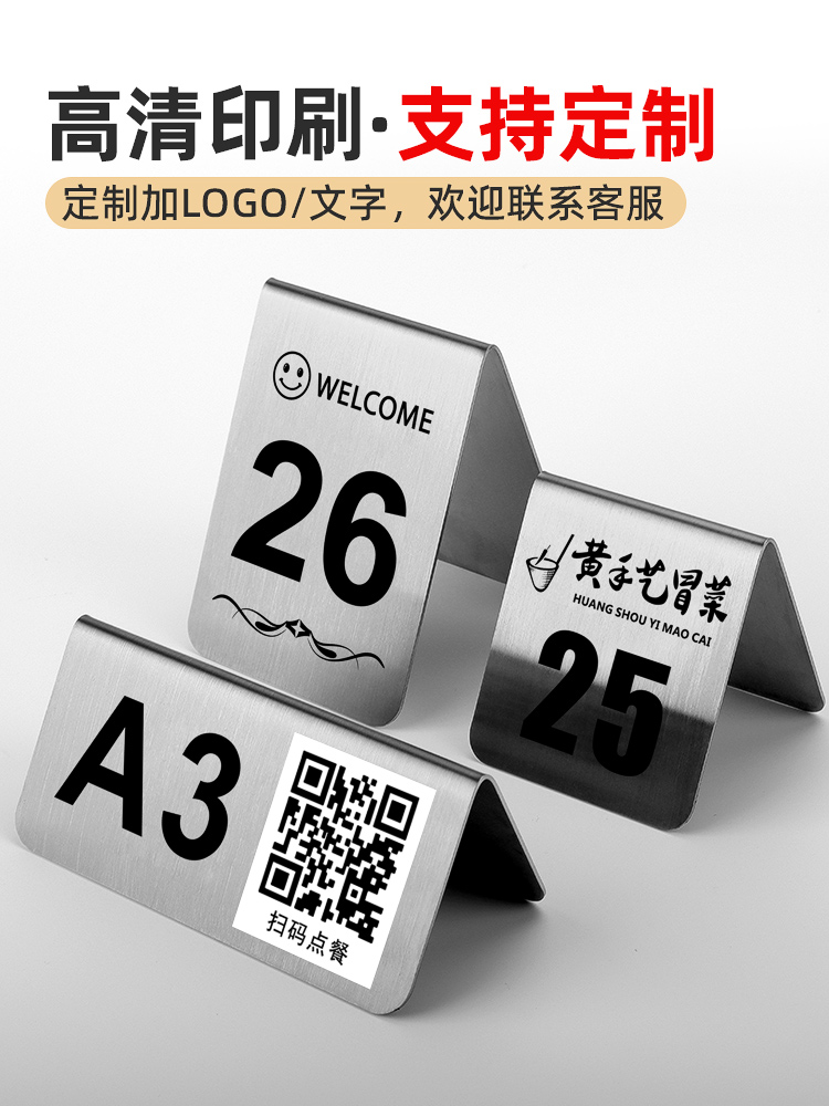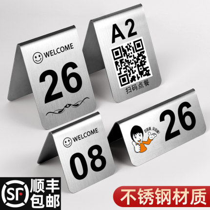 不锈钢桌号牌餐号牌立牌餐厅餐桌立式点餐牌双面号码牌酒店二维码点餐牌数字展示立牌台牌排队等号叫号牌定制