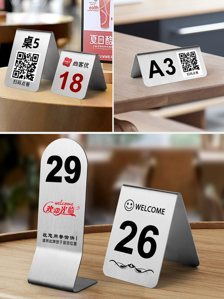 桌号牌不锈钢二维码点餐牌