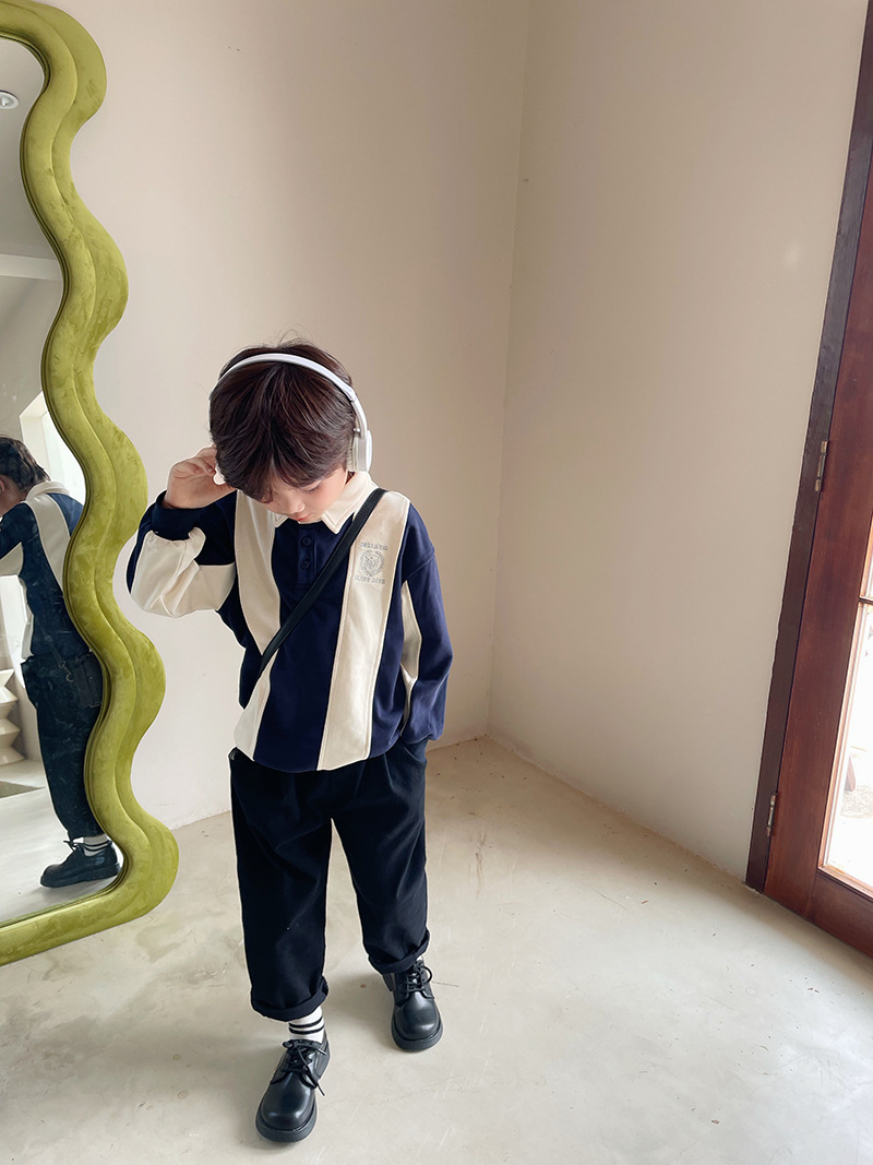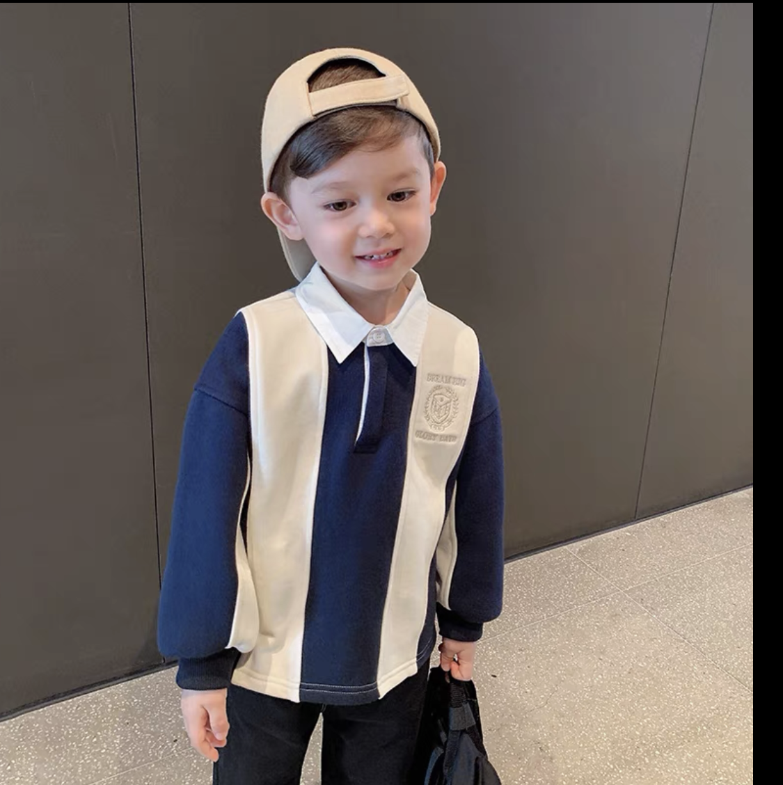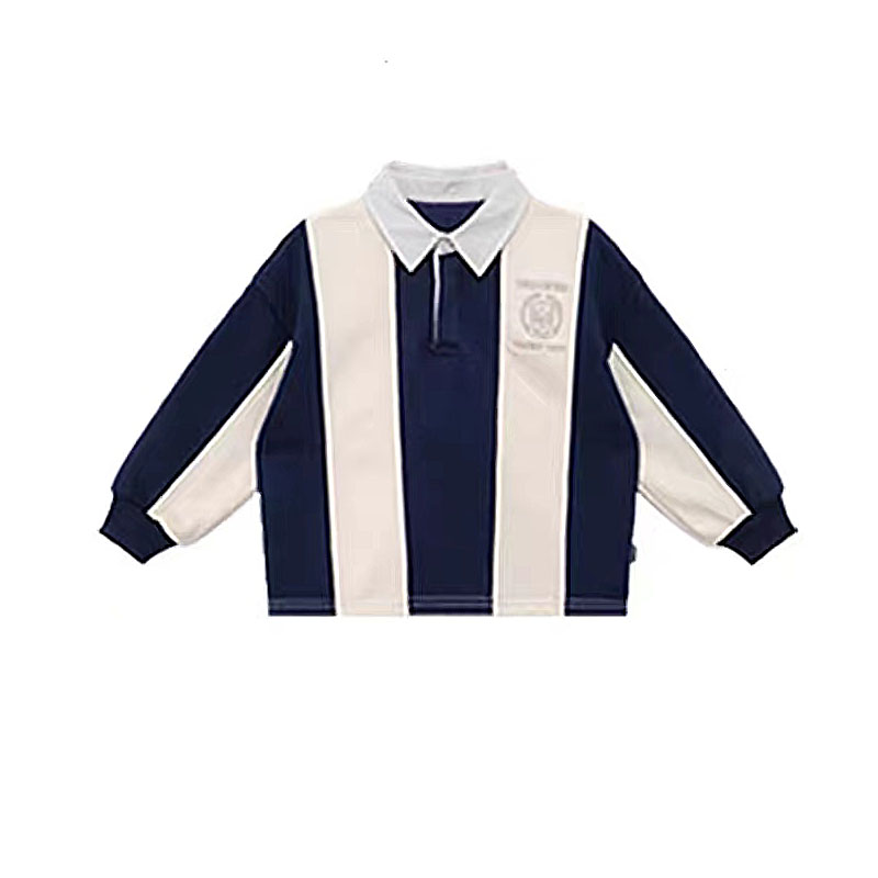 儿童春装新款气质学院风撞色翻领条纹卫衣男童长袖POLO上衣潮T恤