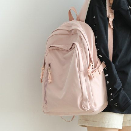 轻便清新纯色双肩包女韩版百搭书包女生大学生初中生休闲双肩背包