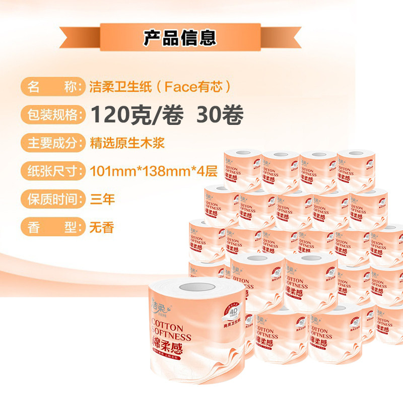 洁柔卷纸可溶解纸巾20/30卷家用厕所专用卷筒纸水溶性厕纸卫生纸