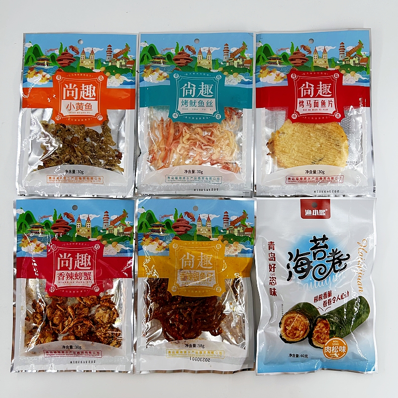 青岛特产尚趣全部开袋即食海鲜零食大礼包鱿鱼丝烤鱼片旅游伴手礼