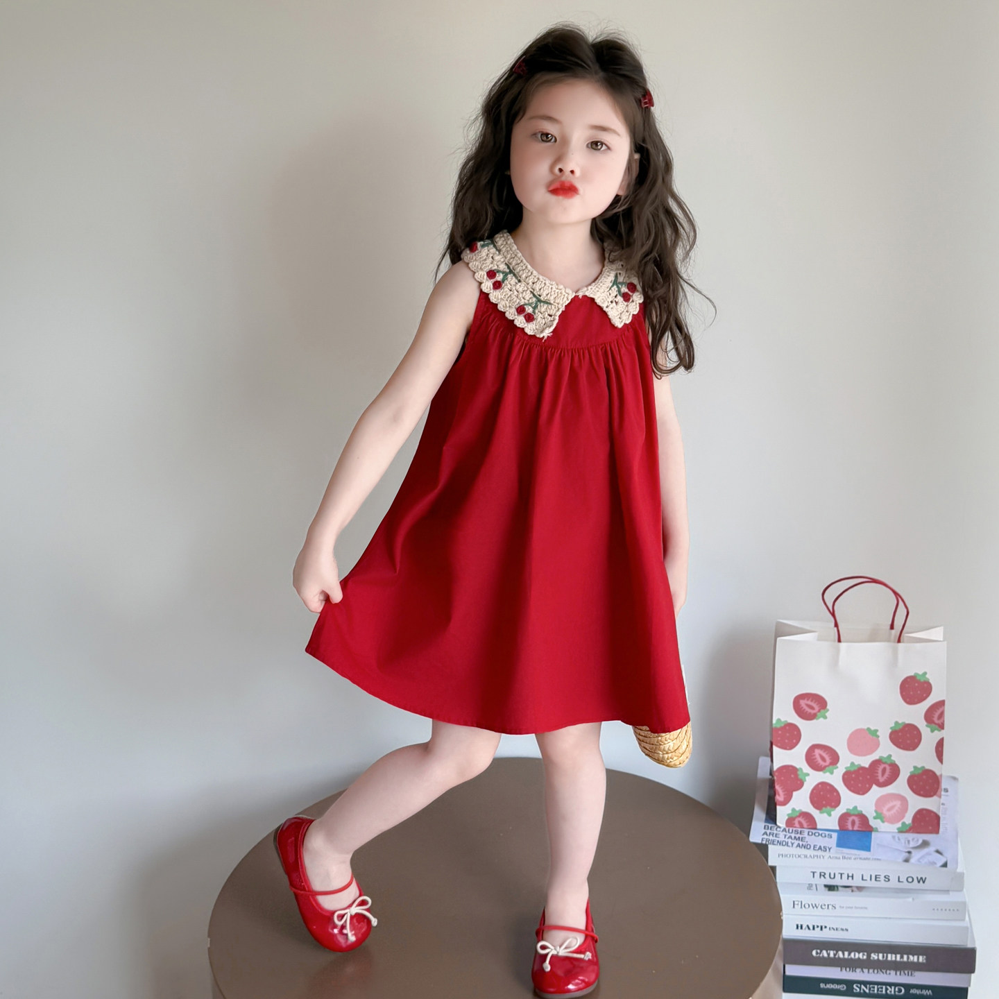 女童超好看连衣裙2025新款夏装儿童红色樱桃女宝薄款夏季公主裙子